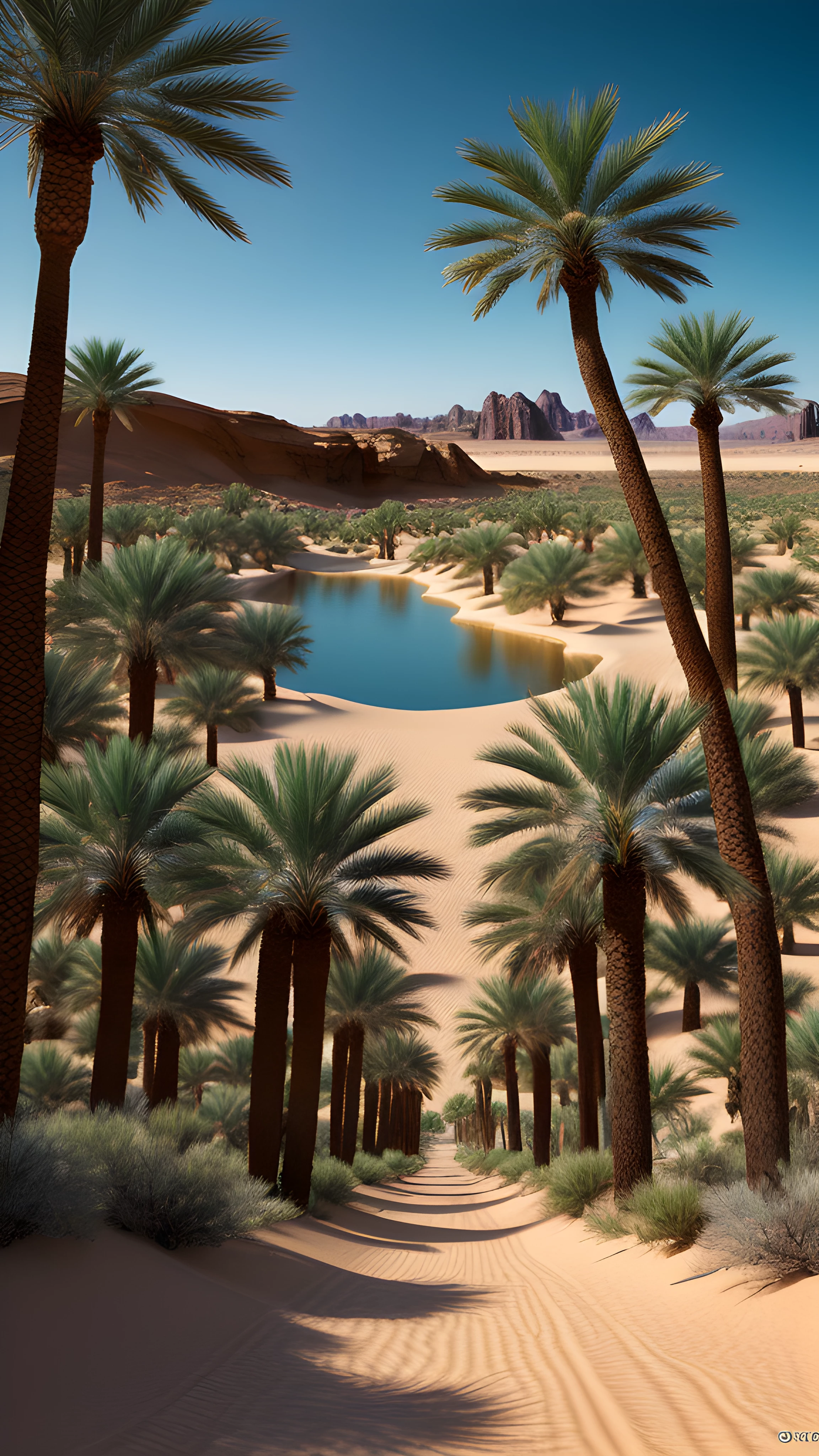 Fantasy Image of Desert Genie Oasis, Amidst the arid sands lies a hidden paradise, guarded by glowing genies waiting to grant wishes to any who venture here Amid the tranquil serenity and gently swaying palm trees, dreamers may find quests to release the full potential of their souls, genies, oasis, desert, mystical, fantasy, spirits, wish-granting, powerful, dreamers, quests, sci-fi photo, hyperdetailed, high quality, 8k, HDR, UHD, realistic photo, perfect anatomy, ultra realistic, photography hyper realistic and hyper detailed, hyper emotional,