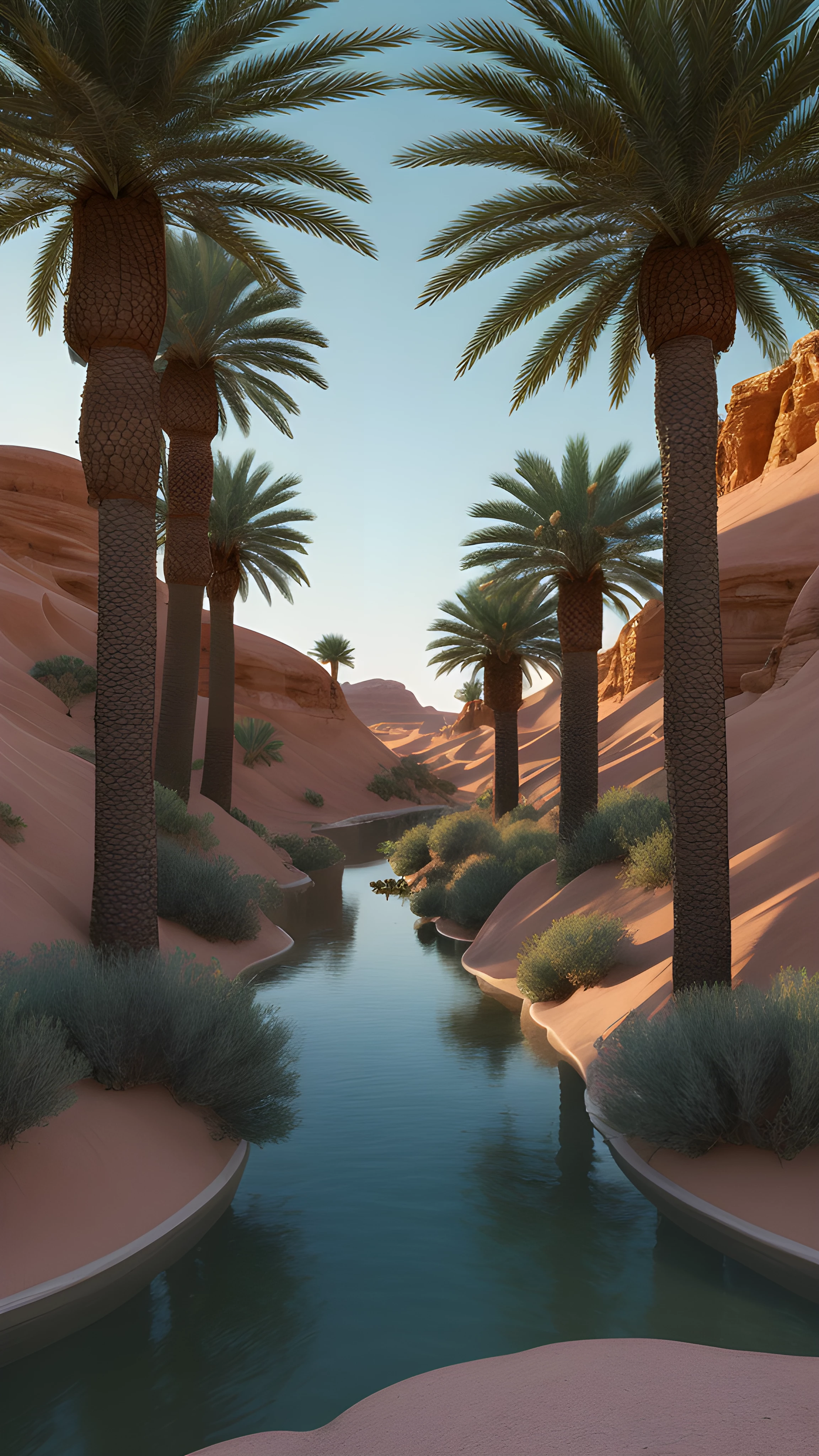 Amidst the arid sands lies a hidden paradise, guarded by glowing genies waiting to grant wishes to any who venture here Amid the tranquil serenity and gently swaying palm trees, dreamers may find quests to release the full potential of their souls
