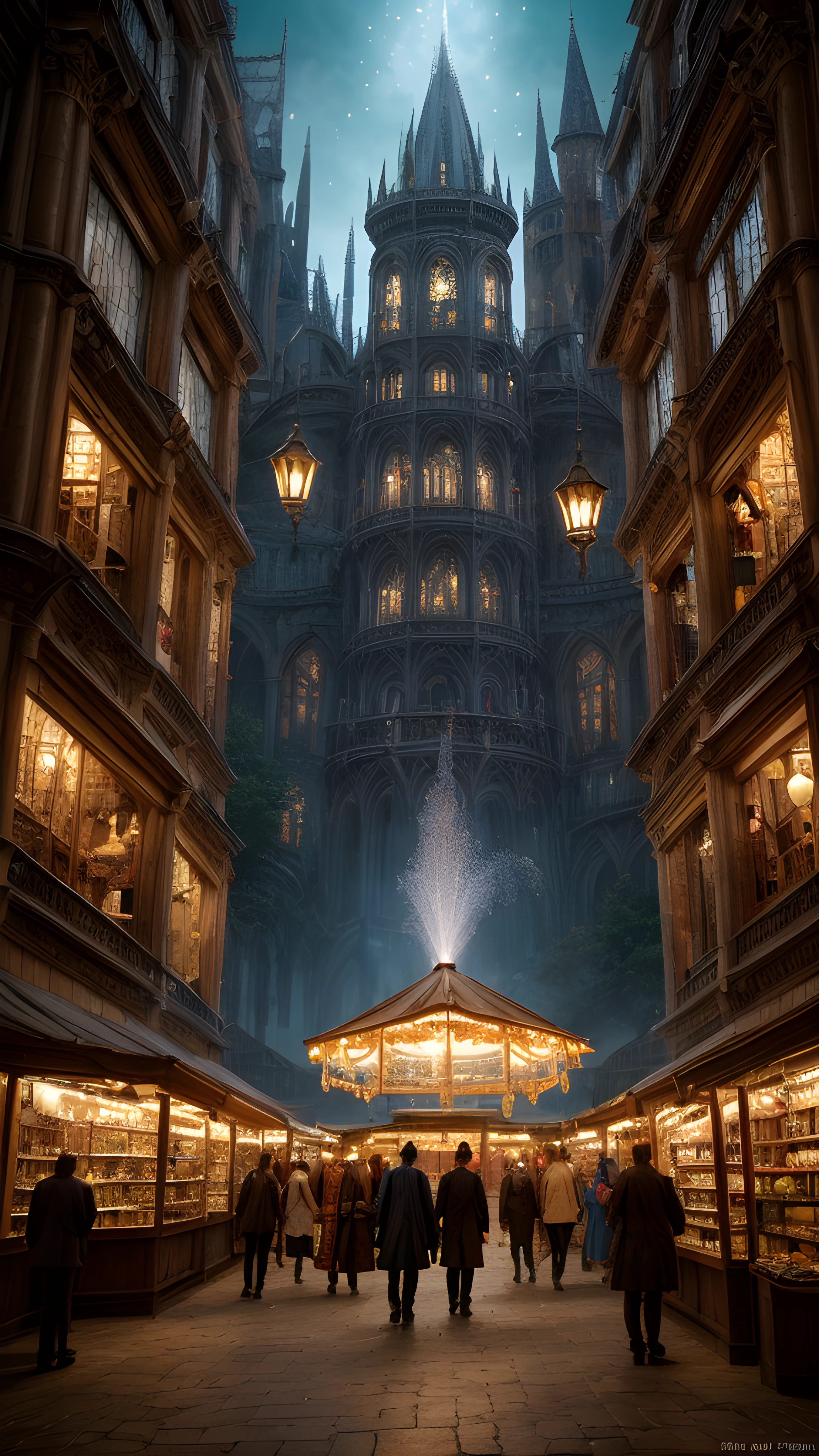 Fantasy Image of Wizard Market Mystique in Medieval City, Step into a mystical marketplace where alchemists and wizards display their potent potions amidst elven realms You'll find magical fountains bubbling with tantalizing elixirs and enchantresses offering sprightly charms, mystique, wizard market, medieval city, magical, elven realms, alchemists, wizards, potions, elixirs, enchantresses, sci-fi photo, hyperdetailed, high quality, 8k, HDR, UHD, realistic photo, perfect anatomy, ultra realistic, photography hyper realistic and hyper detailed, hyper emotional,
