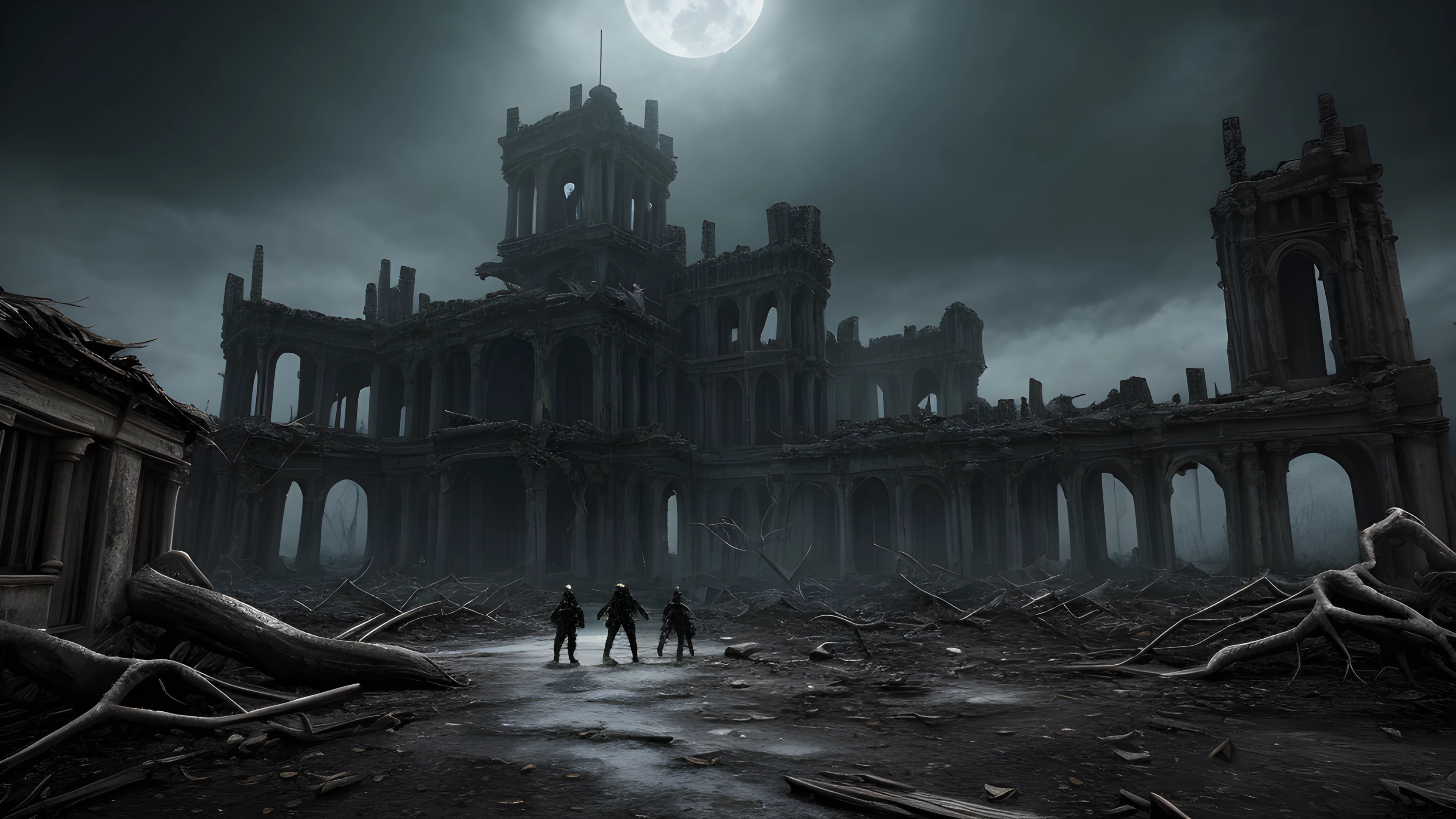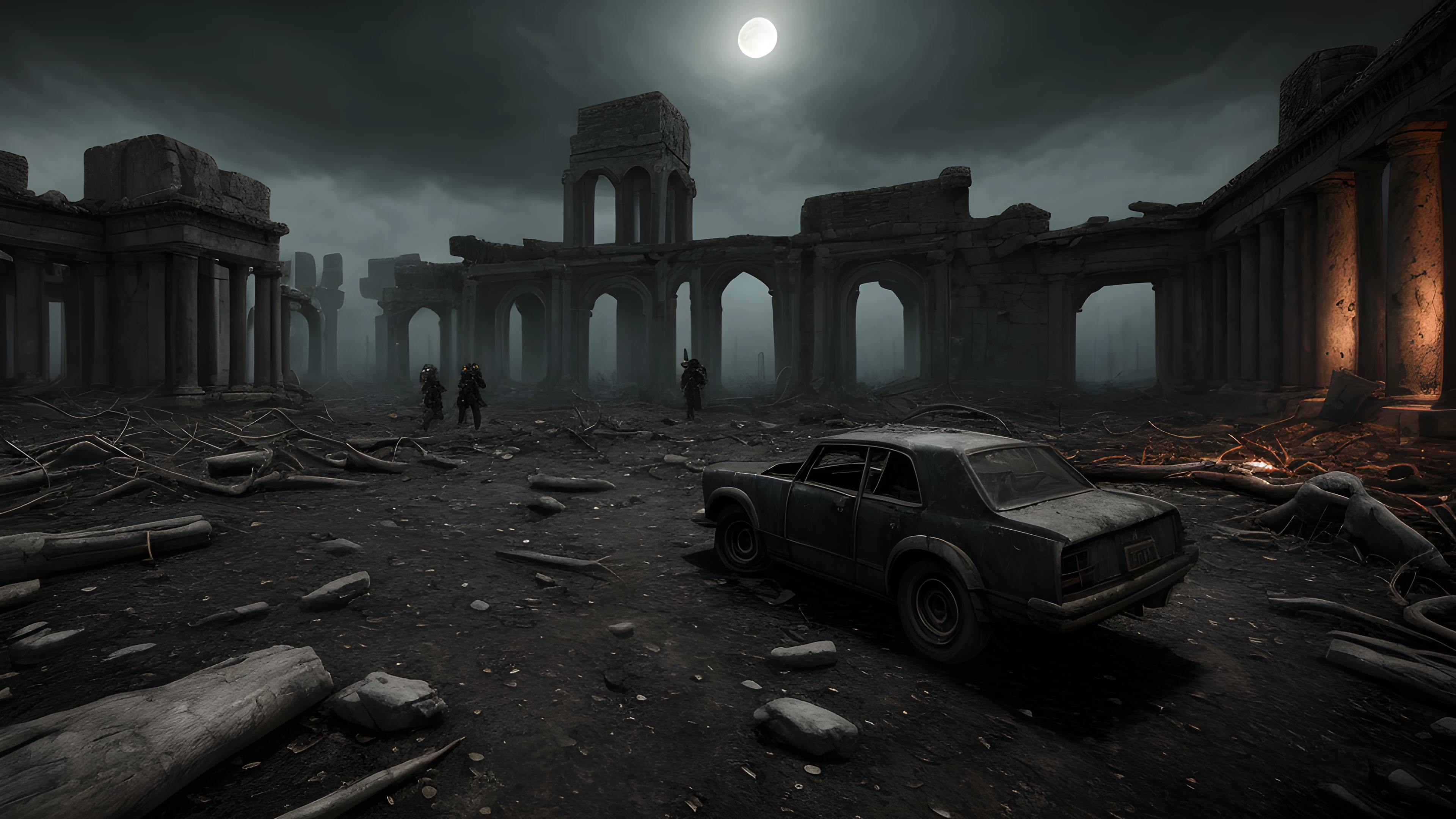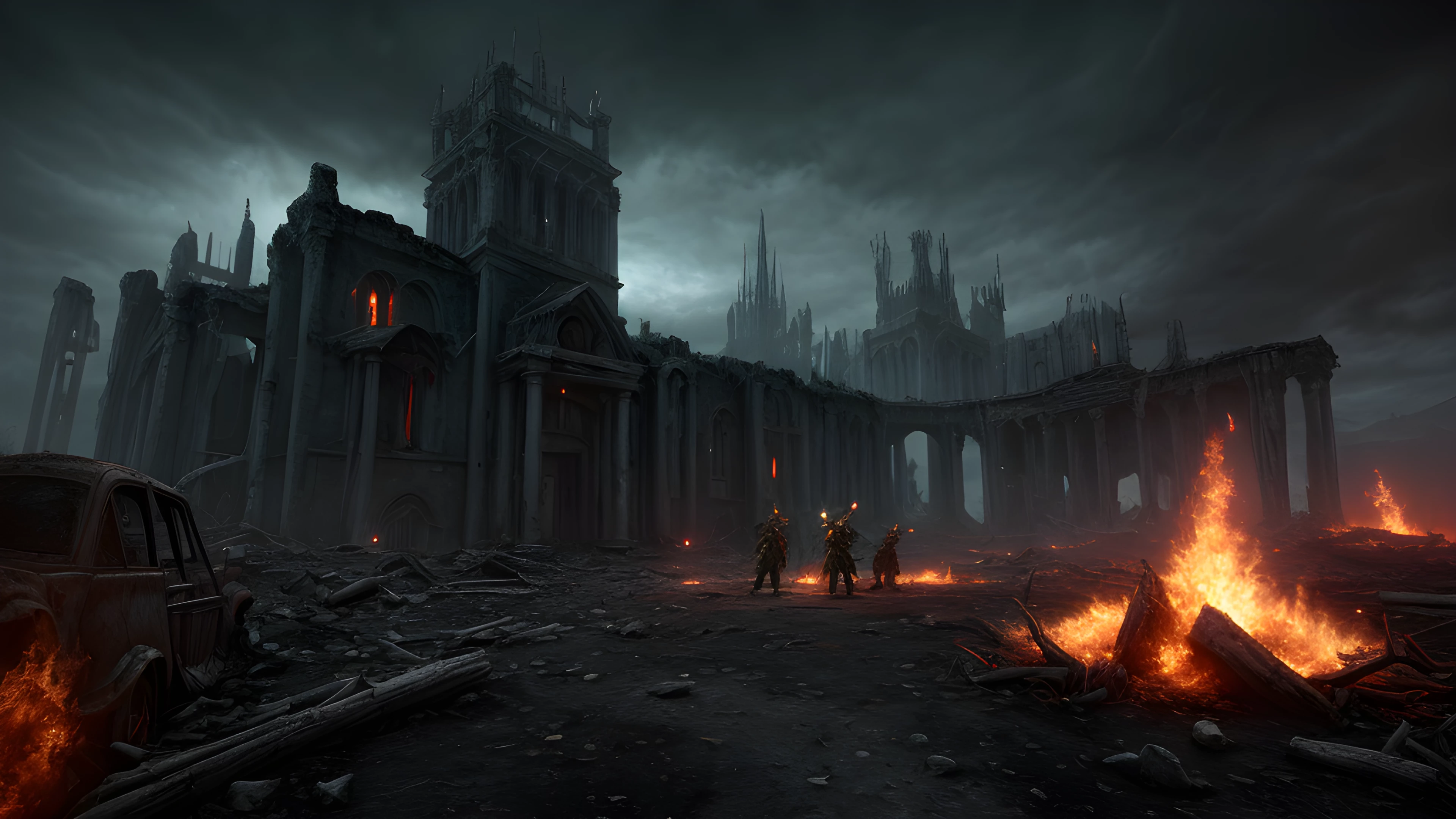 Apocalyptic Witchcraft unveiling sorcery meets in withering ruins, In a barren world reeking with the smell of decay, lurking creatures emerge from the shadows Sorcerers wielding ancient spells clash in duels, their powers unleashing unfathomable destruction upon the ruined city, fantasy, apocalypse, magic, witches, dark, horror, ruins, sorcery, bewitched, unearthly, elaborated detailed 8k, detailed, 4k 8k 16k gigapixel render, highly detailed, 8k, cinematic HDR SSAO RTX