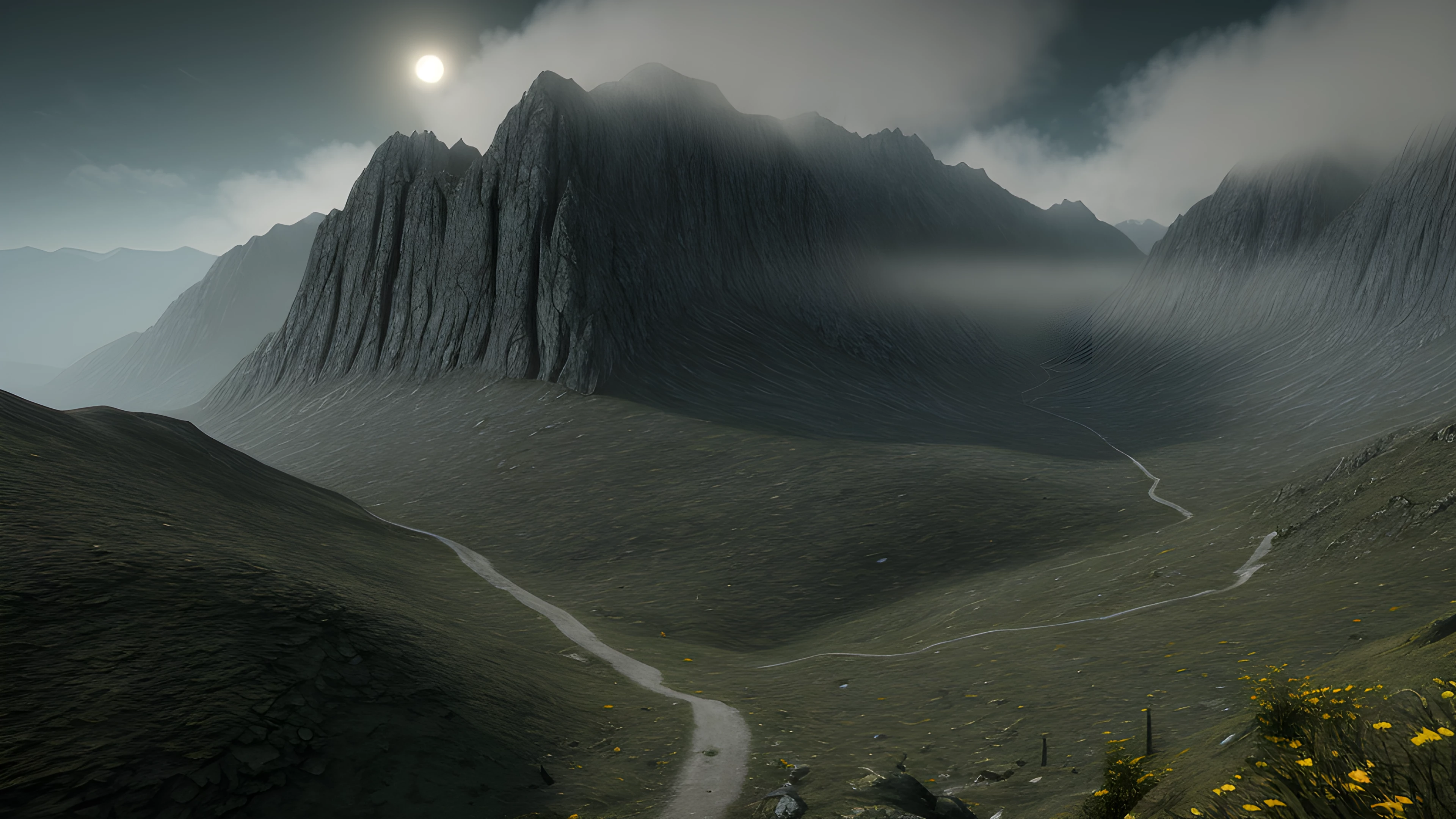 The otherworldly sentinel of bewildering mountains, An enchanted mountain pass, shrouded in mist and echoed with strange whispers The only guide is a fearsome its name shrouded in mystery Passage is rumoured to lead to underworld journeys, beware, Mythical, creatures, alter-world, journey, adventure, fear, unknown, trails, ancient, opulent, elaborated detailed 8k, detailed, 4k 8k 16k gigapixel render, highly detailed, 8k, cinematic HDR SSAO RTX