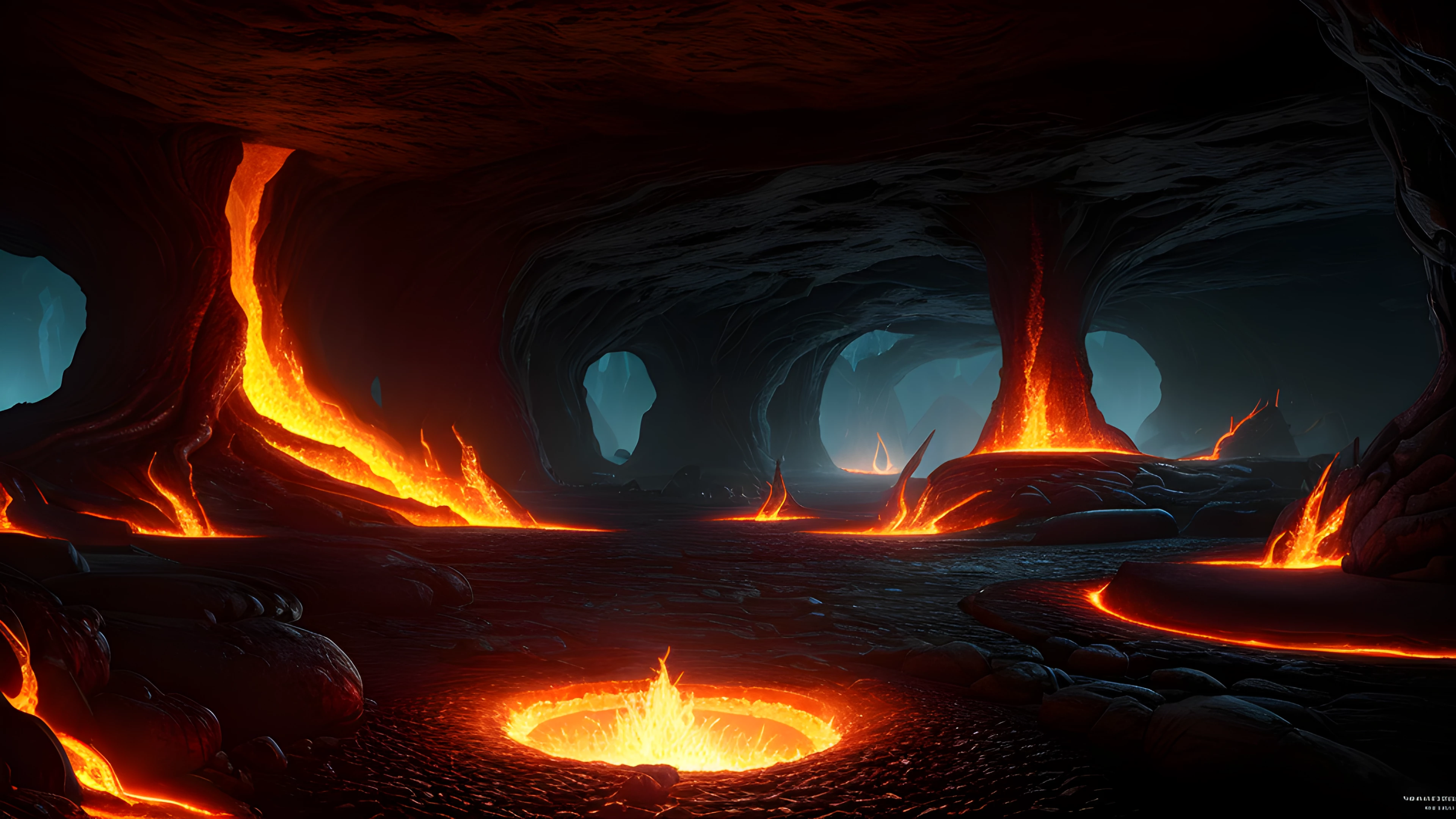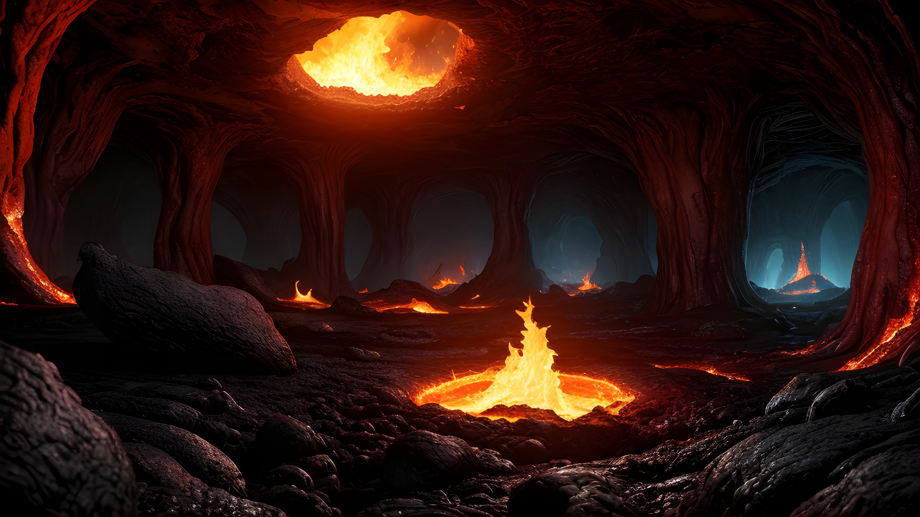 Fantasy Image of Fiery Treasures of the Underworld, Amidst a river of molten lava, demons and fiery creatures inhabit the underbelly of our world Among the treasures found in this perilous realm are ancient, time-bending relics with immense power, Linda Bergkvist, underworld, mythical creatures, enchanted artifacts, time-warping, fiery landscape, blazing guardians, forbidden realm, lava river, transcending, sci-fi photo, hyperdetailed, high quality, 8k, HDR, UHD, realistic photo, perfect anatomy, ultra realistic, photography hyper realistic and hyper detailed, hyper emotional,