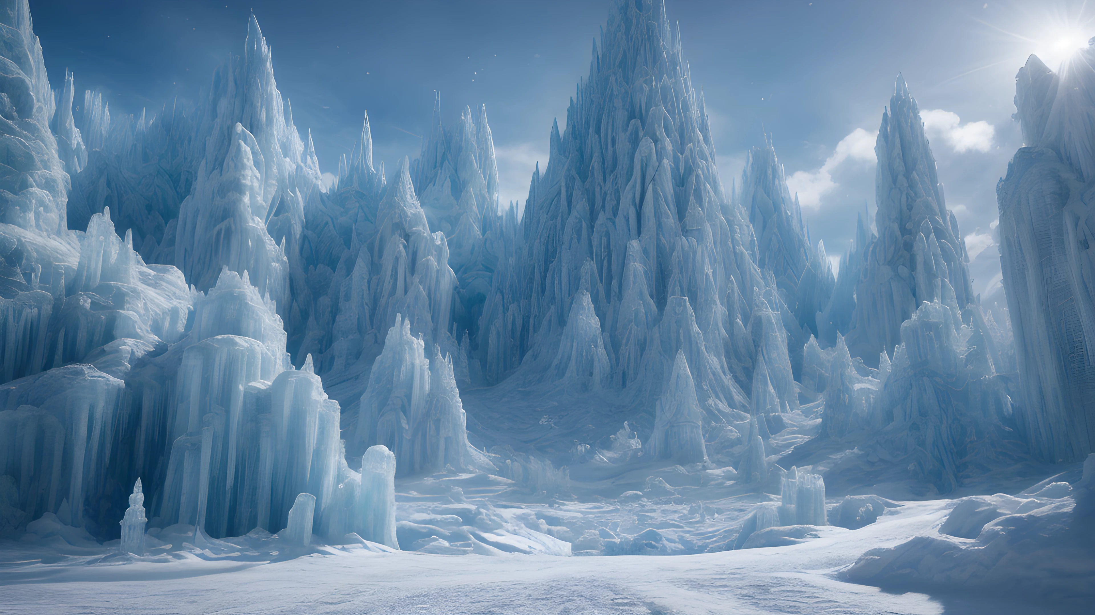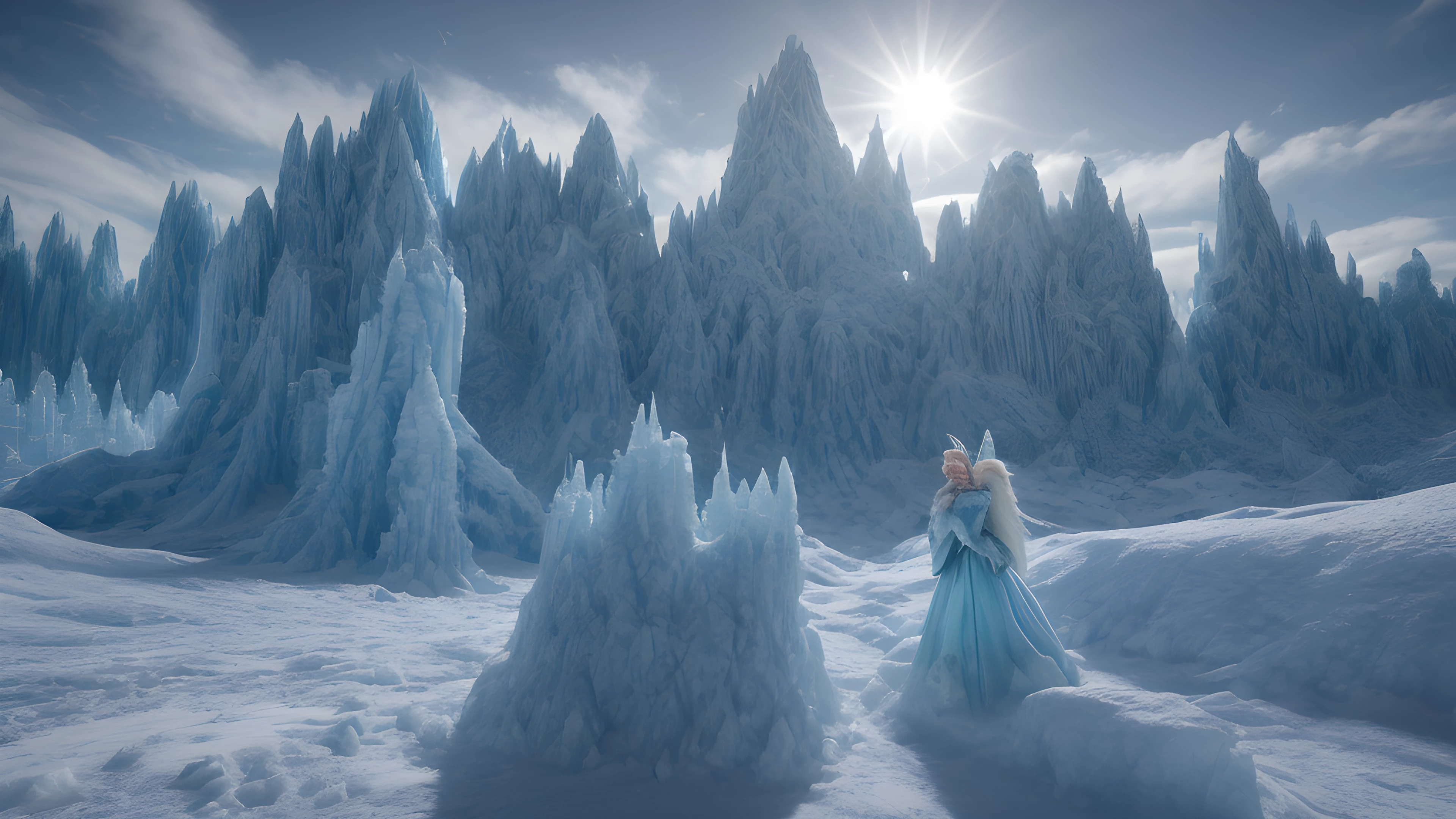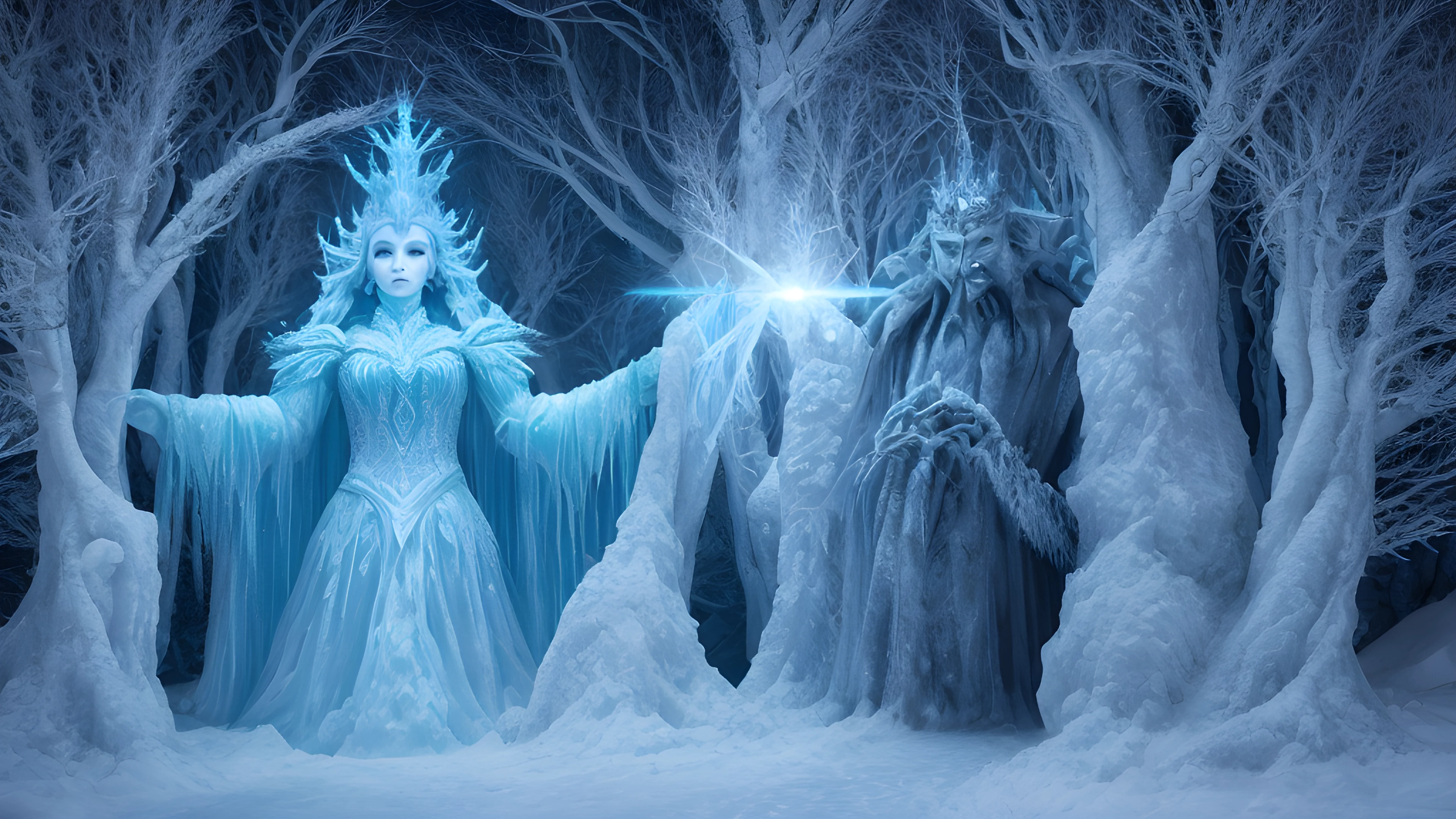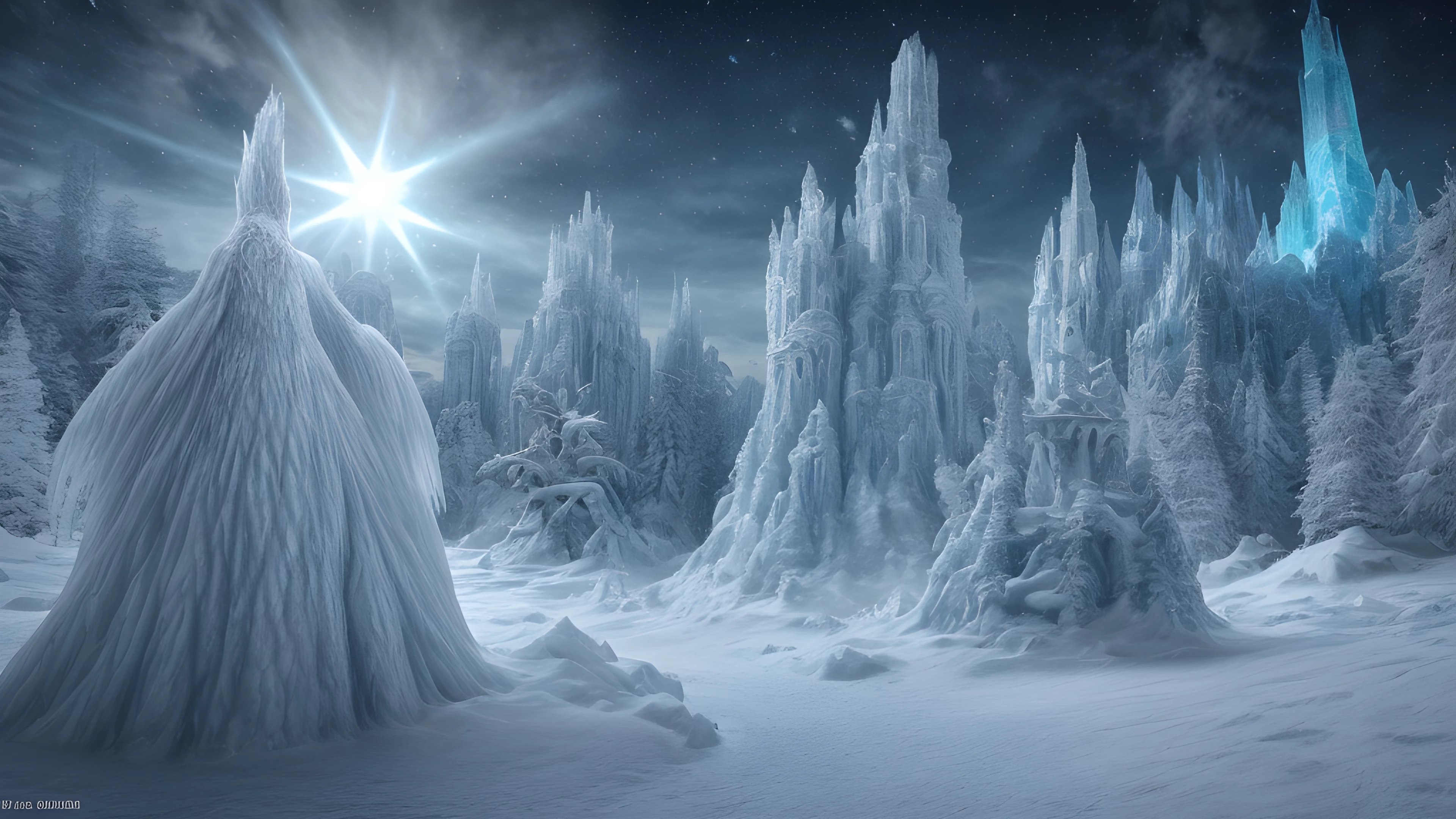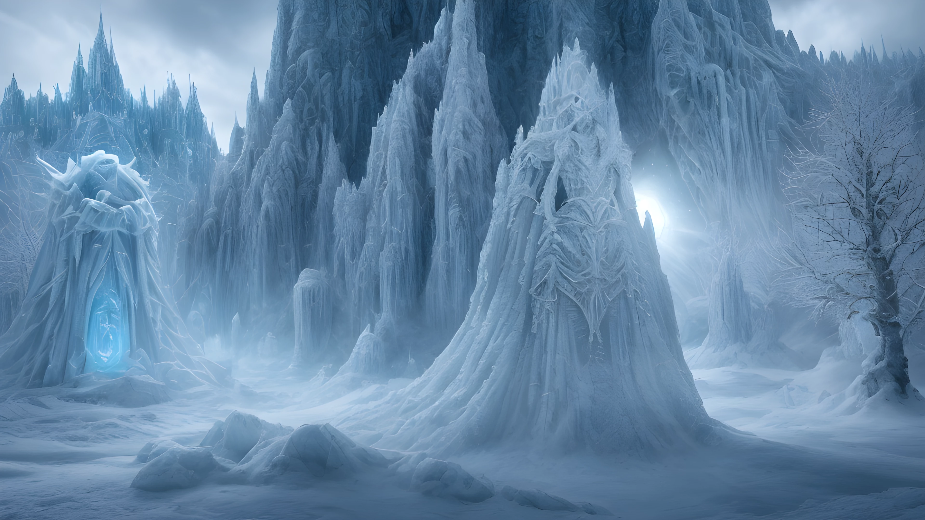 Fantasy Image of Frozen Realms Divine Secrets, Enter a mystical realm of ice and uncover otherworldly revelations among the towering snow sculptures and the majestic Snow King with his powerful ice golems A world of eternal mystery and wonder awaits, Ice, Realm, Mystical, Genarius, Inquisitive, Revelation, Magical, Unknown, sci-fi photo, hyperdetailed, high quality, 8k, HDR, UHD, realistic photo, perfect anatomy, ultra realistic, photography hyper realistic and hyper detailed, hyper emotional,
