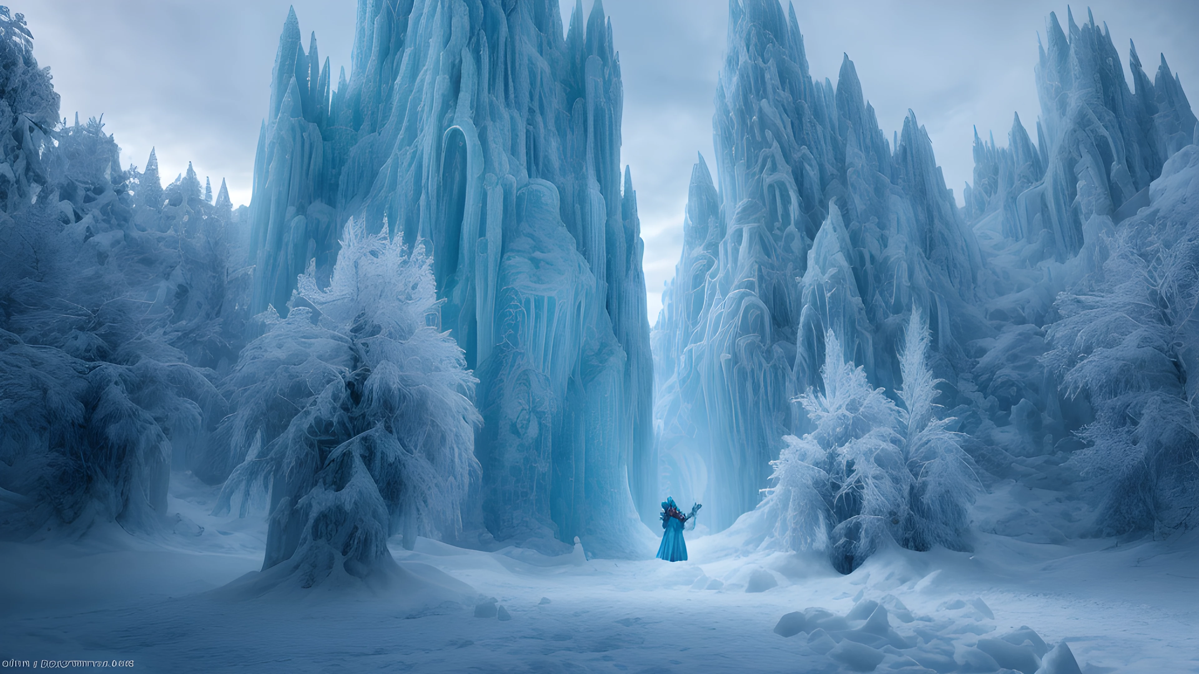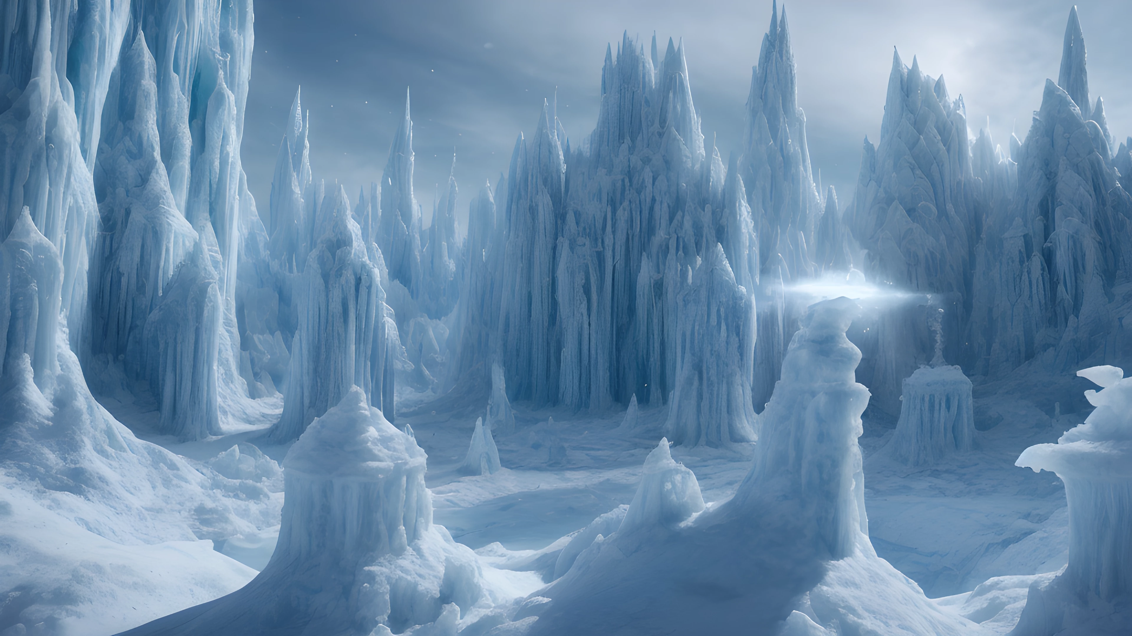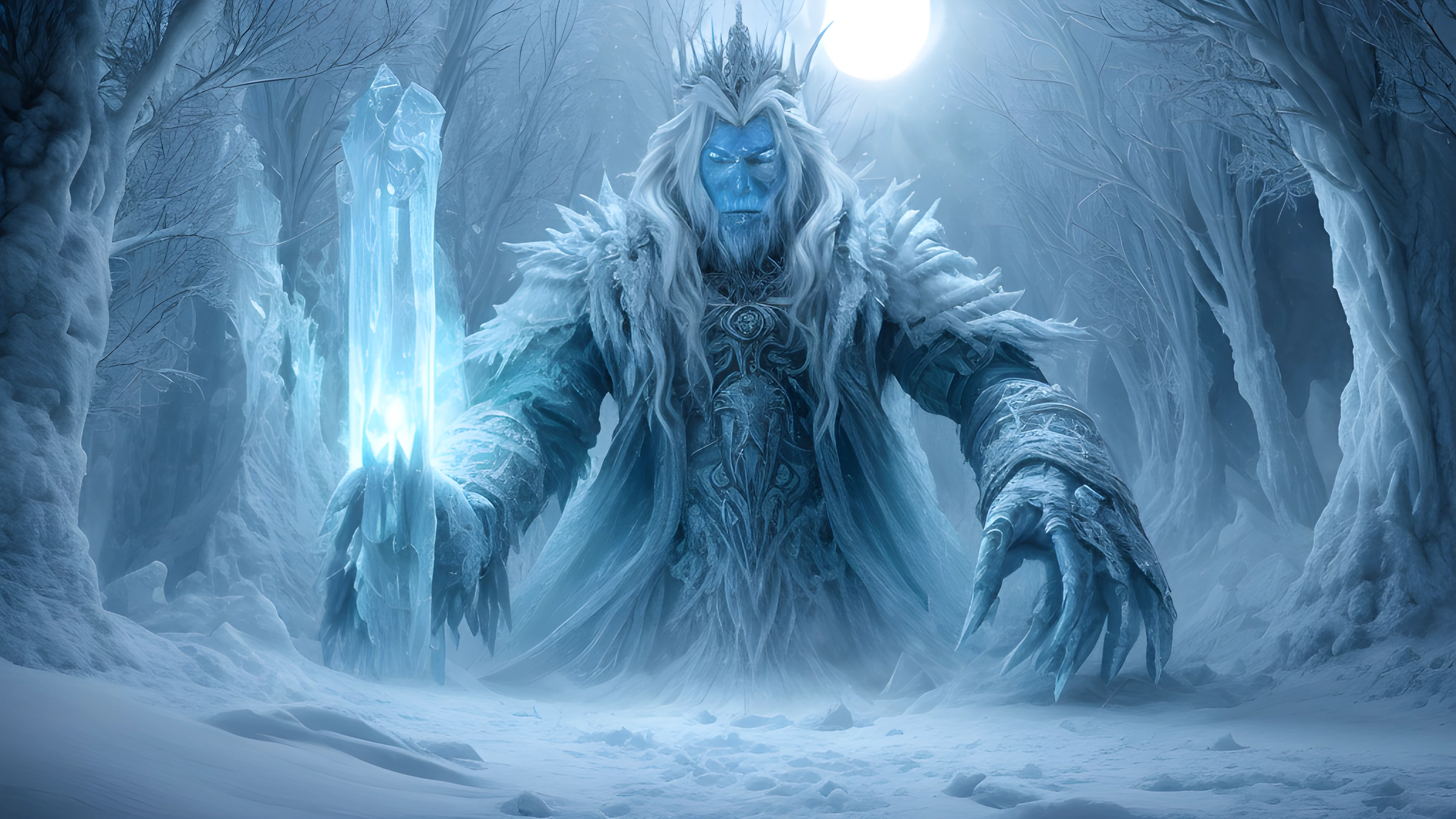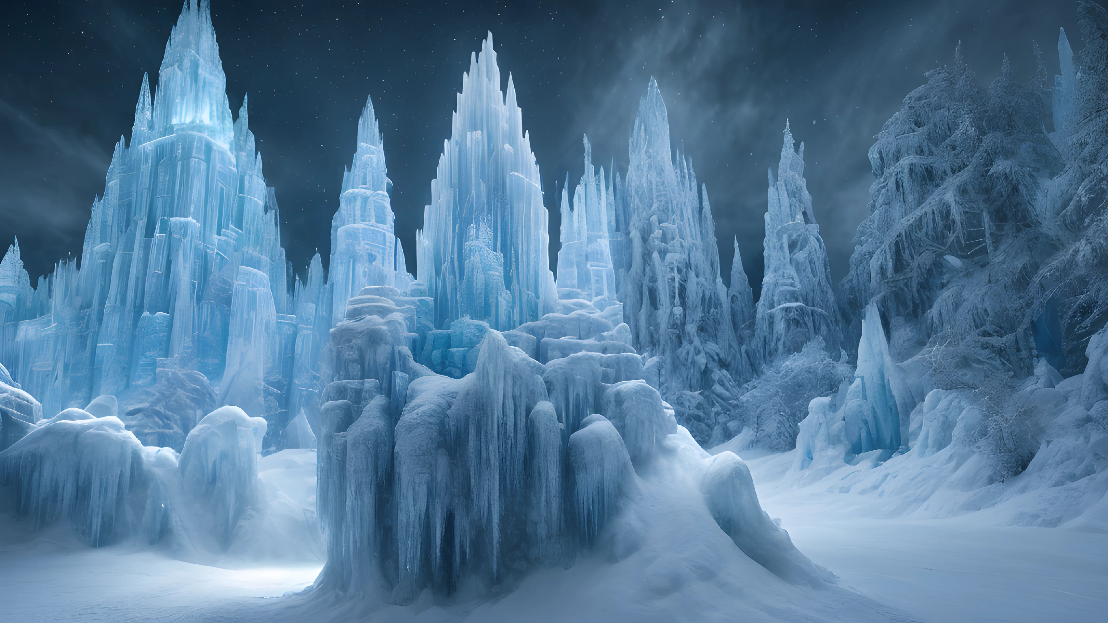 Fantasy Image of Frozen Realms Divine Secrets, Enter a mystical realm of ice and uncover otherworldly revelations among the towering snow sculptures and the majestic Snow King with his powerful ice golems A world of eternal mystery and wonder awaits, Ice, Realm, Mystical, Genarius, Inquisitive, Revelation, Magical, Unknown, sci-fi photo, hyperdetailed, high quality, 8k, HDR, UHD, realistic photo, perfect anatomy, ultra realistic, photography hyper realistic and hyper detailed, hyper emotional,
