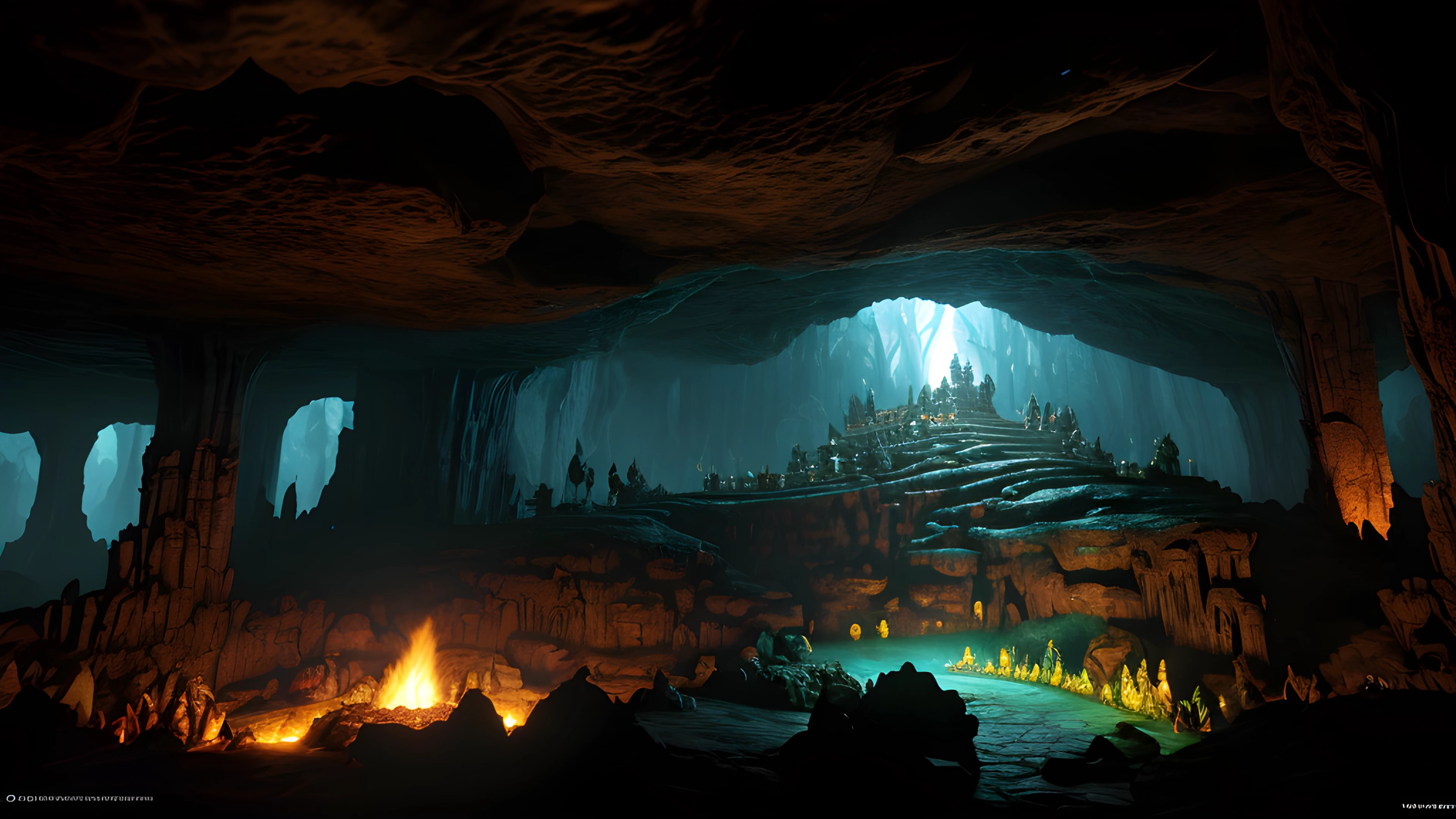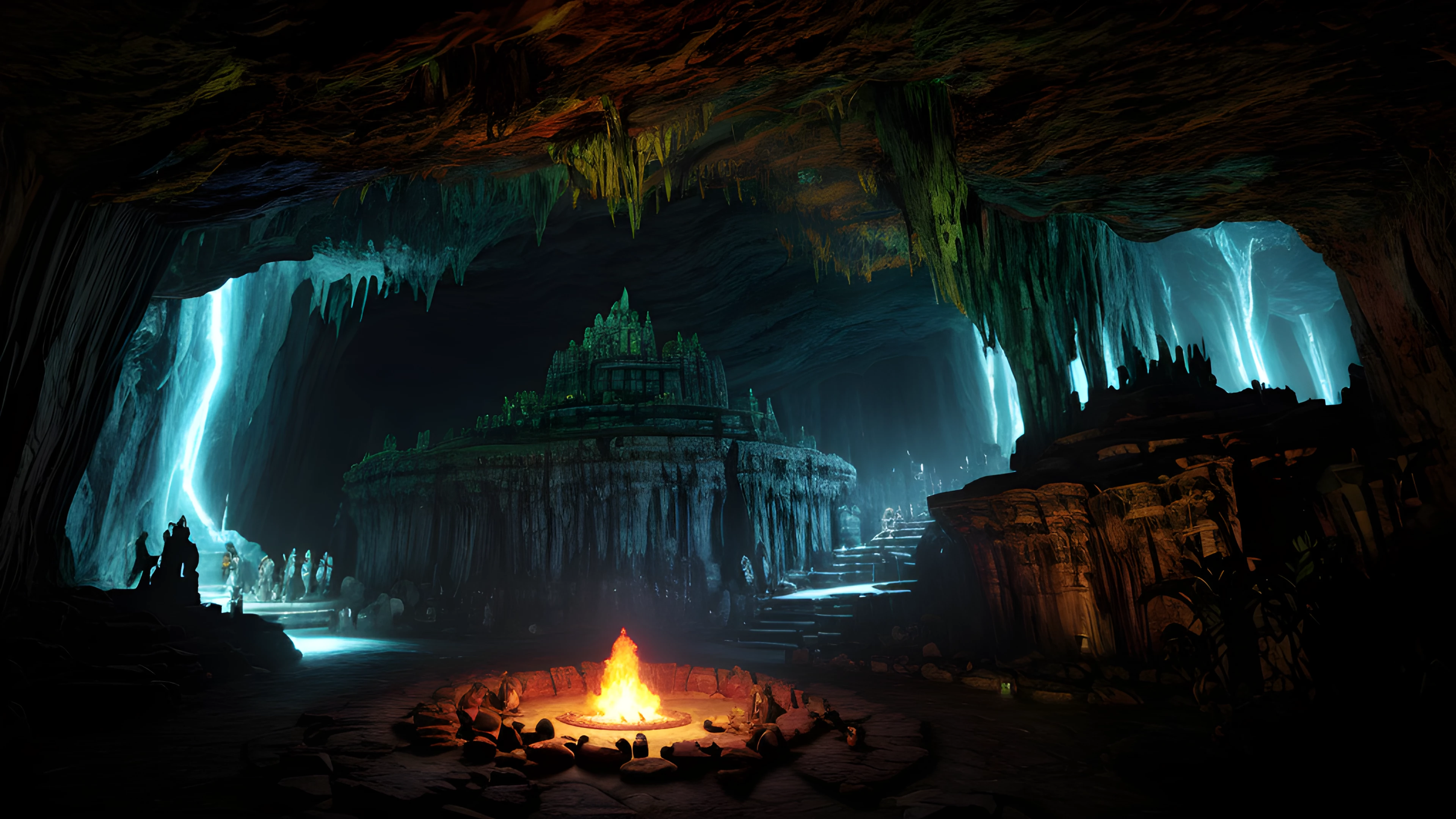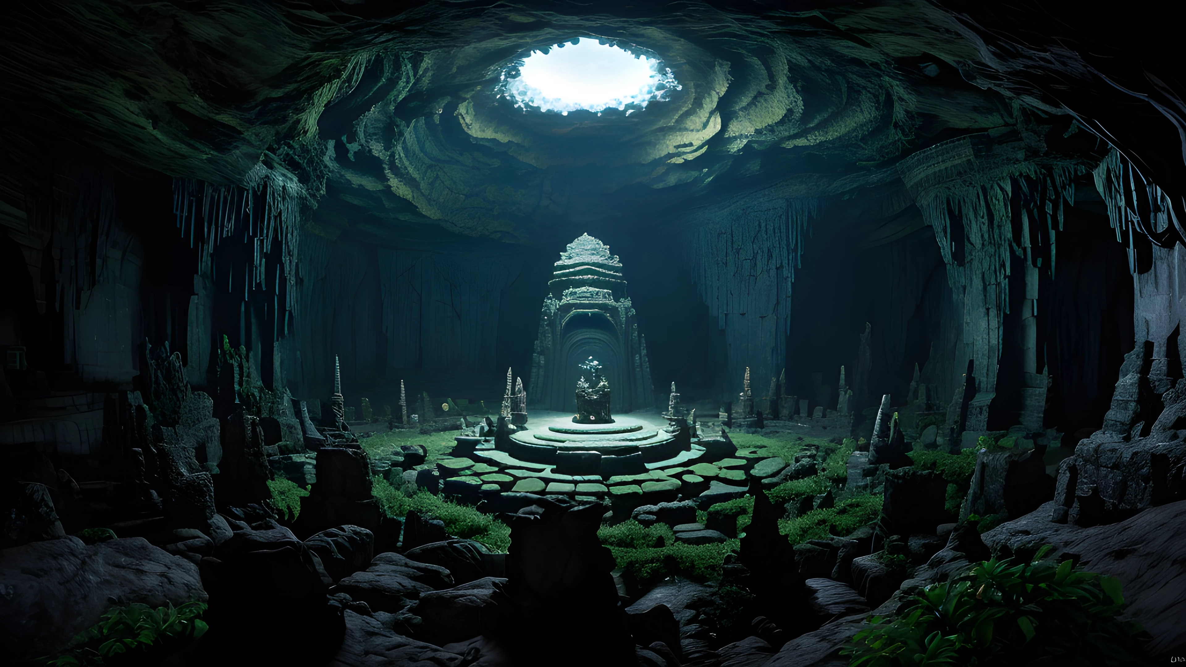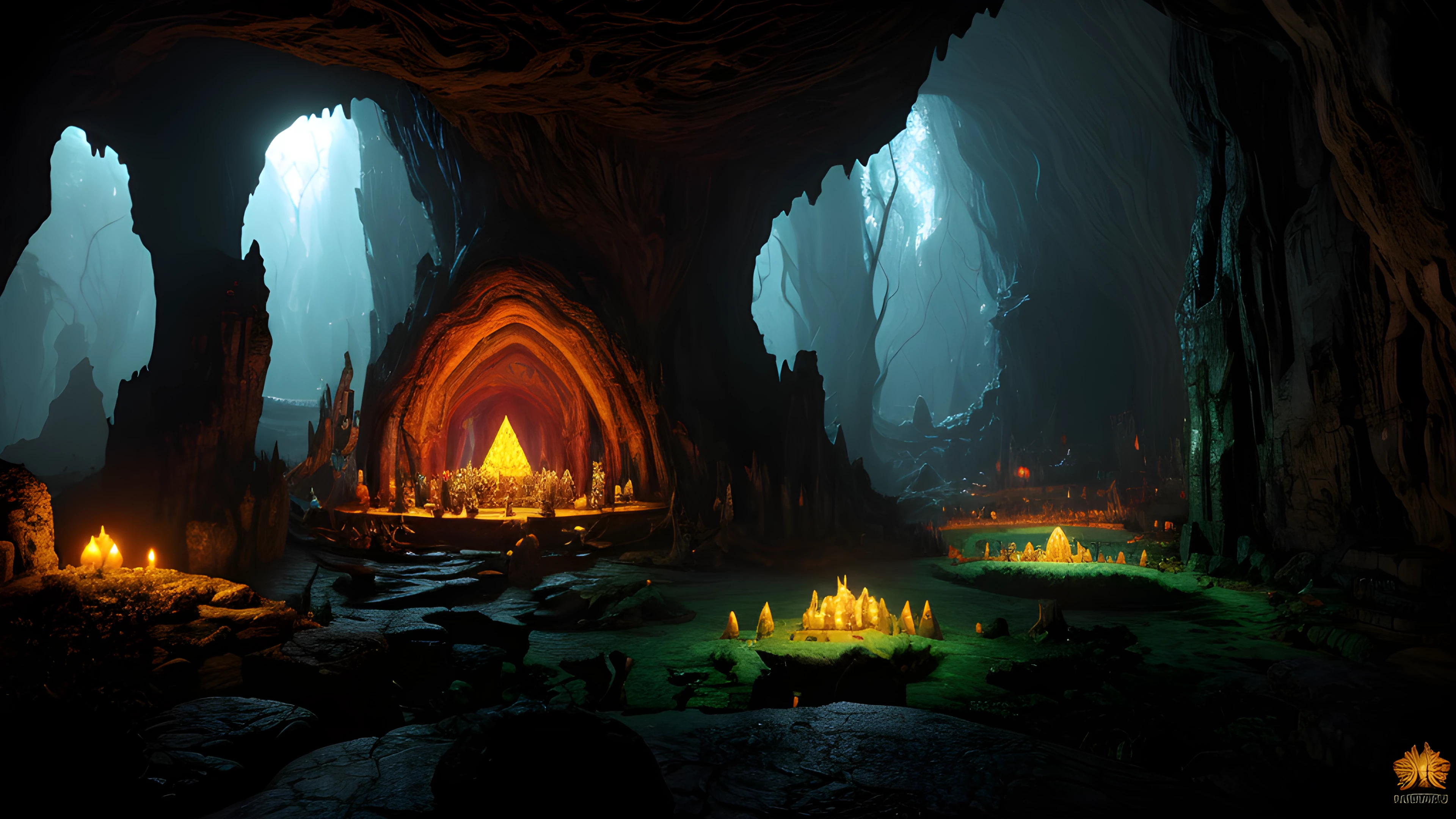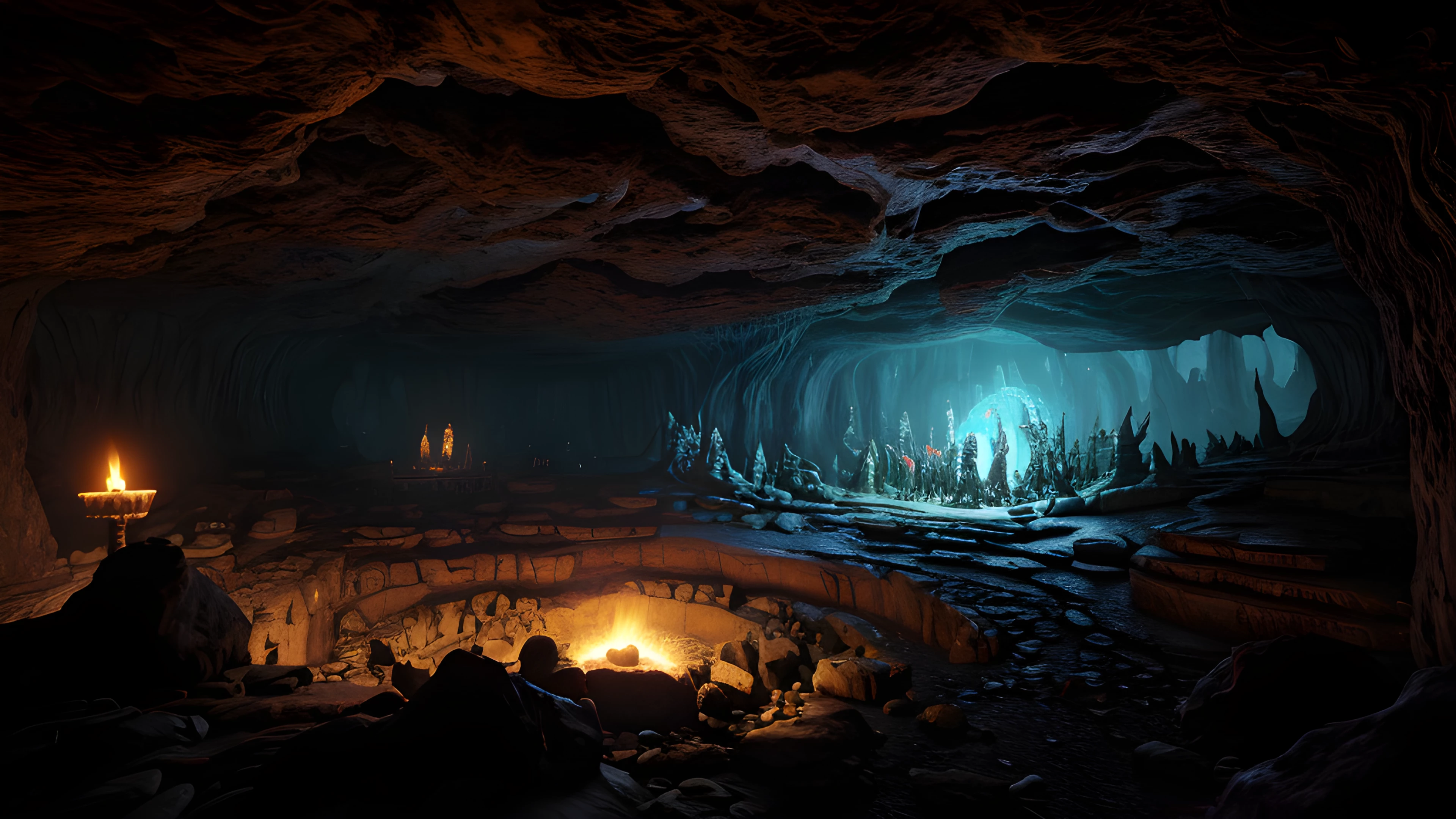 Cave of the Shamans, Enter the awe-inspiring, surreal cave where shamans gather to summon ancient creatures of mysticism, born of the twisted mind of Graham Masterton, Shamans, Creatures, Mysticism, Graham Masterton, Surreal, Underground, Ritual, Artifacts, Darkness, elaborated detailed 8k, detailed, 4k 8k 16k gigapixel render, highly detailed, 8k, cinematic HDR SSAO RTX
