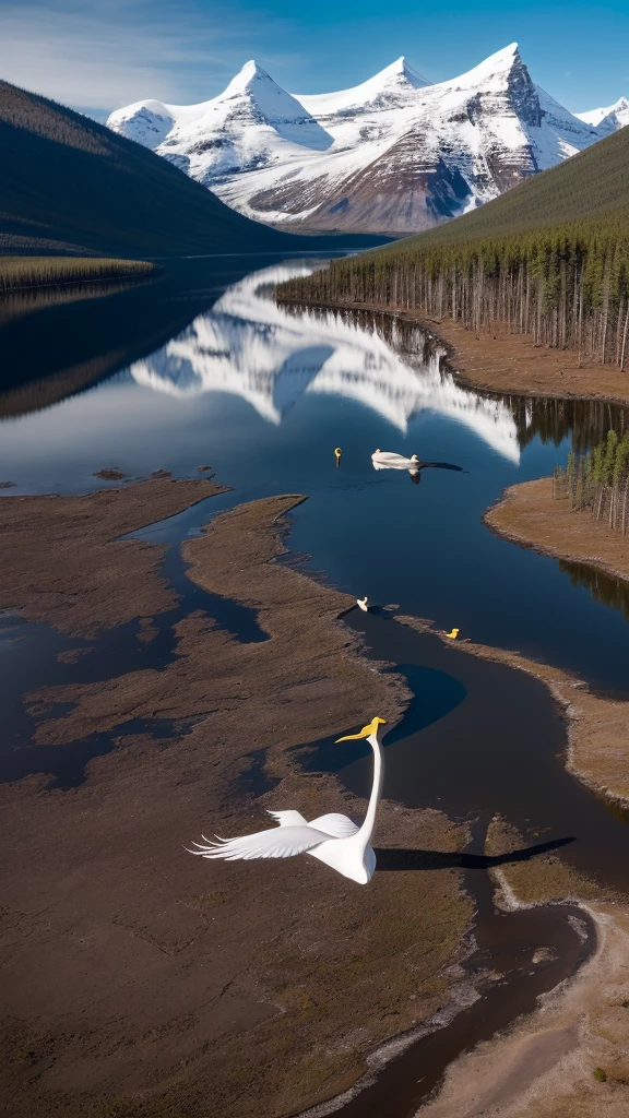 Spectacular Beauty of Whooper Wonders in Remote Locations, Immerse yourself in the mesmerizing scenes of nature's wonders captured through a wide-angle lens and witness firsthand the splendor of wildlife starring the majestic whooper swans in their natural habitat Let yourself be transported to undisturbed remote locations filled with indescribable sights of raw stunning beauty, nature, wonders, remote, locations, whooper swans, wide-angle lens, spectacular, beauty, wildlife photography, animal, highly detailed, 8k, hdr, national geographic, nature