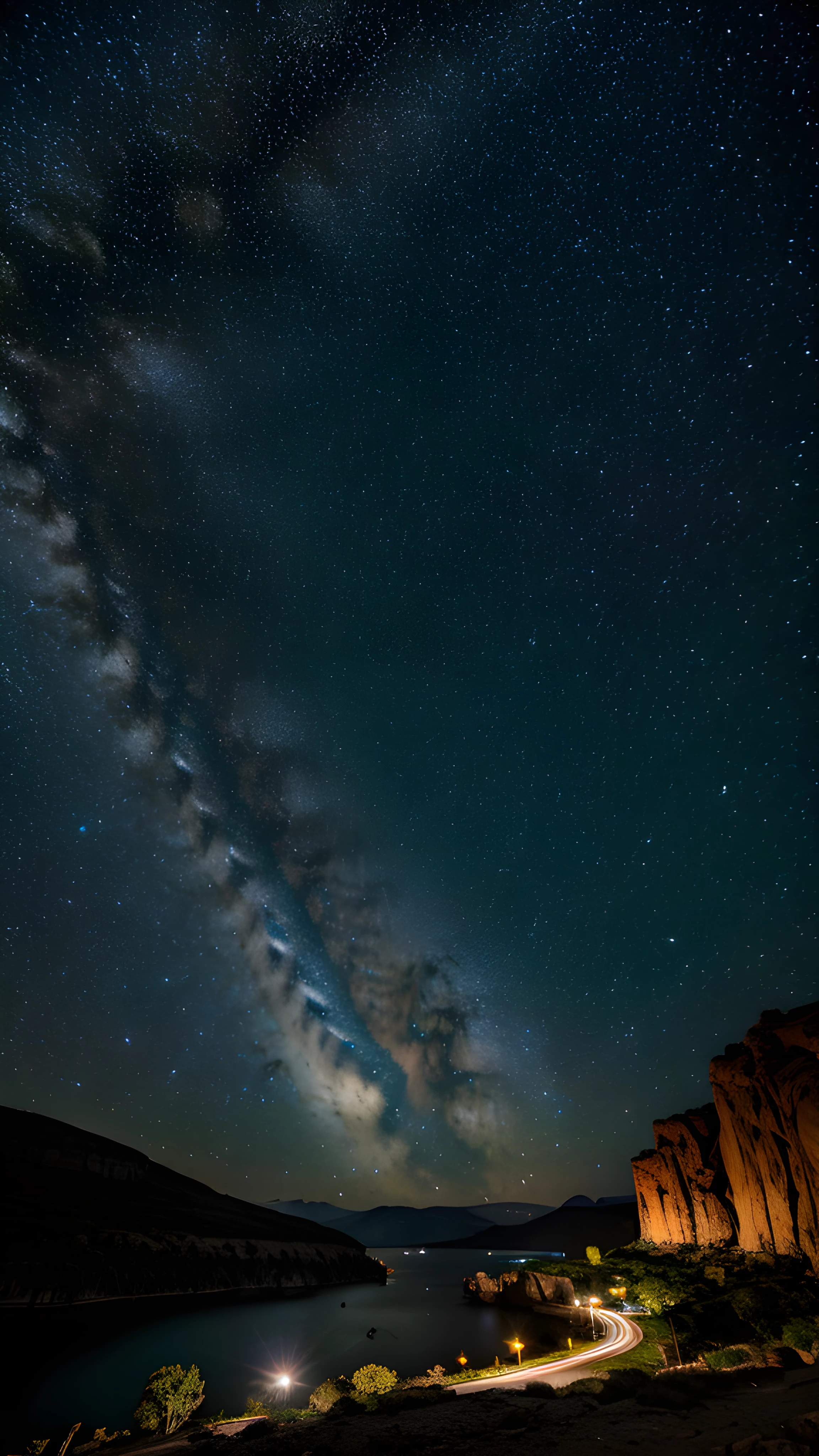 A DSLR real photography Capturing the Iconic Starry Night My Inspiring Journey, Immersing myself in the enchanting abyss of the starry gaps, setting my camera at the perfect workplace and witnessing the spectacular magic takes an iconic place!, professional, photographing, star, Ansel Adams, iconic, journey, breathtaking, magical, enchanting, inspiring, highly detailed, 8k, hdr