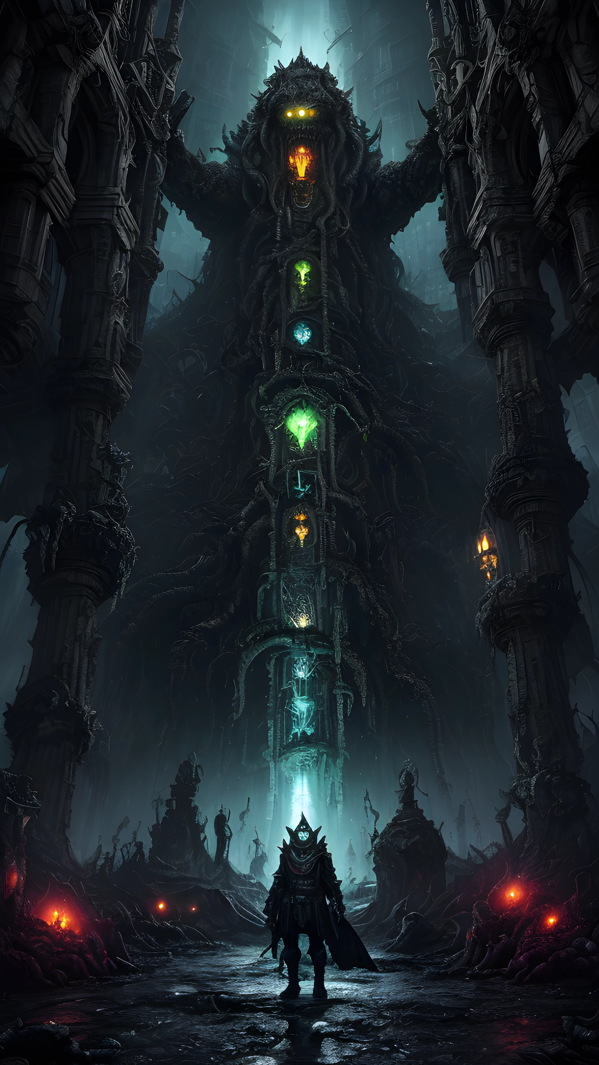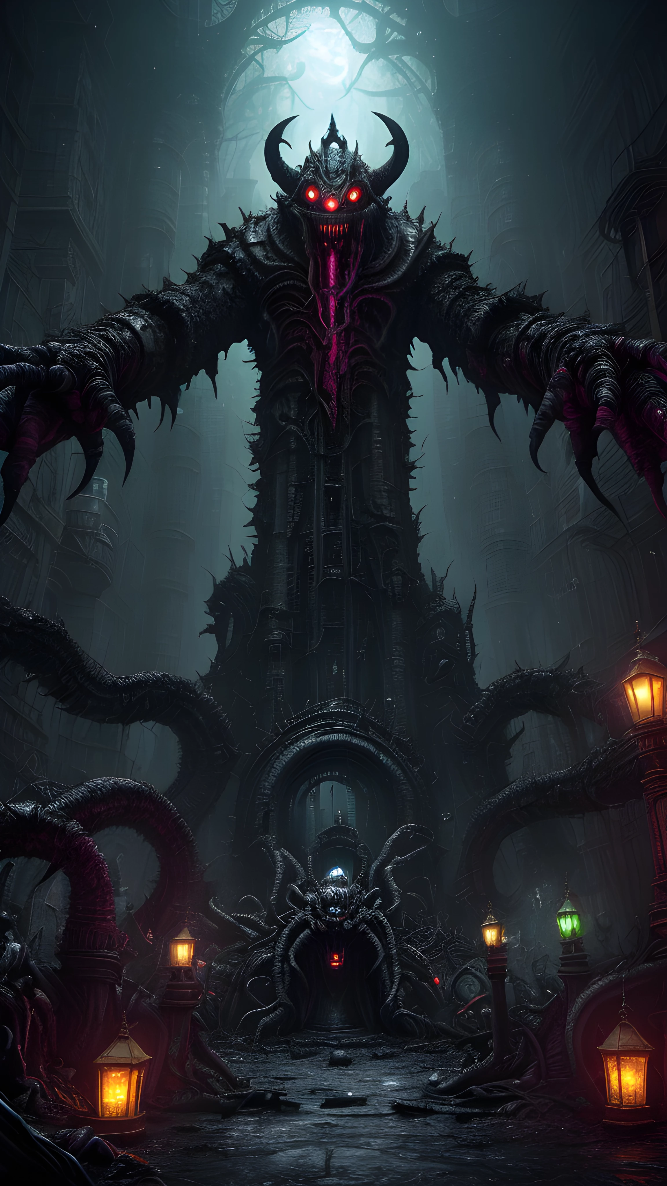 Hidden deep beneath the earth lies a city teeming with grotesque creatures, each unique and twisted beyond reason by ancient rituals The stench of sulfur and decay infiltrates the damp air of the network of putrid tunnels, as the roar of monstrous beasts echoes through the urban blight It's a chilling nexus of corruption and ghastly devastation, orchestrated by keen hands reaching out from beyond the psychic veil Be wary of the poisonous mists and decaying mire lurking in the swamps littered throughout the city
