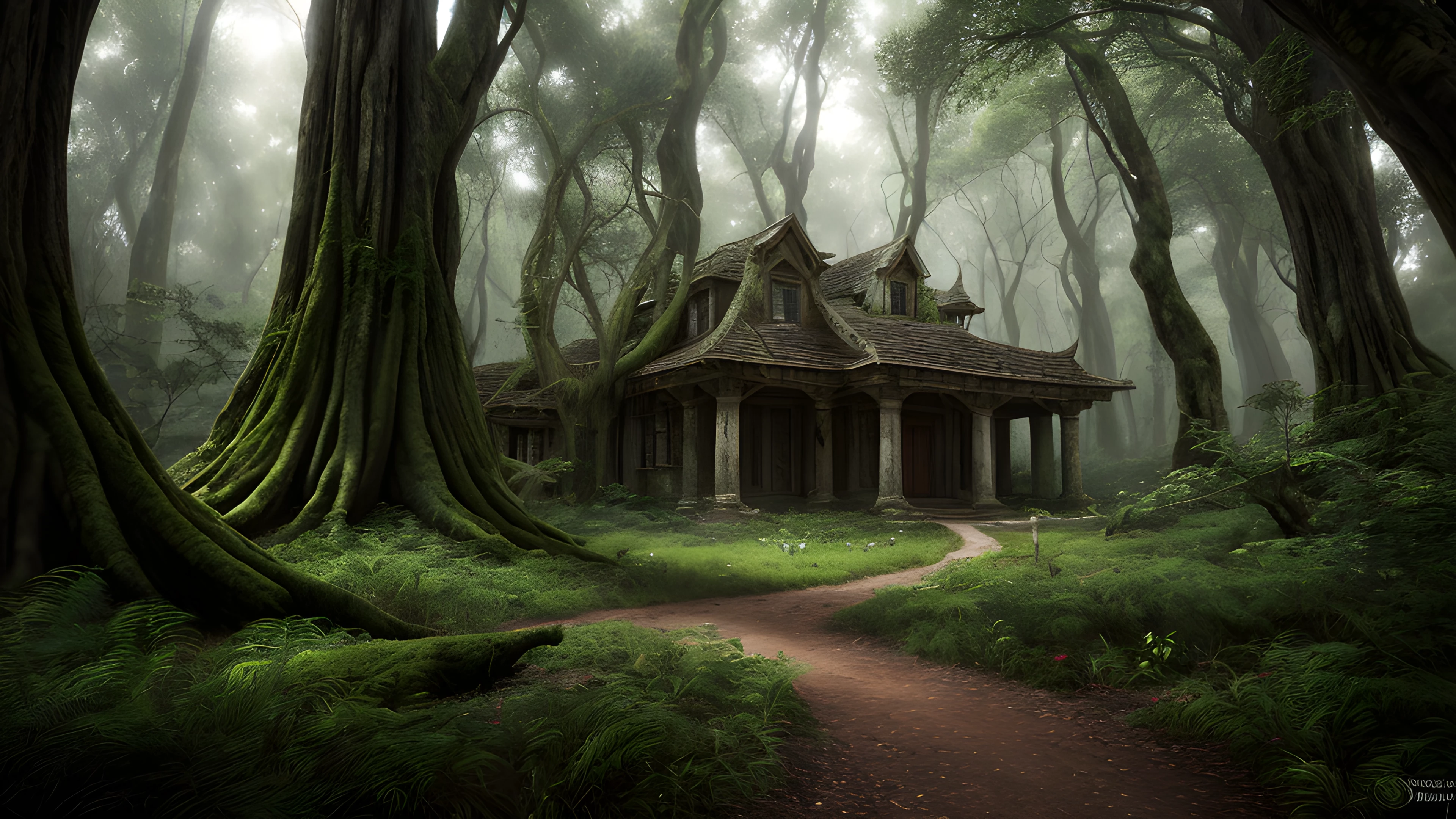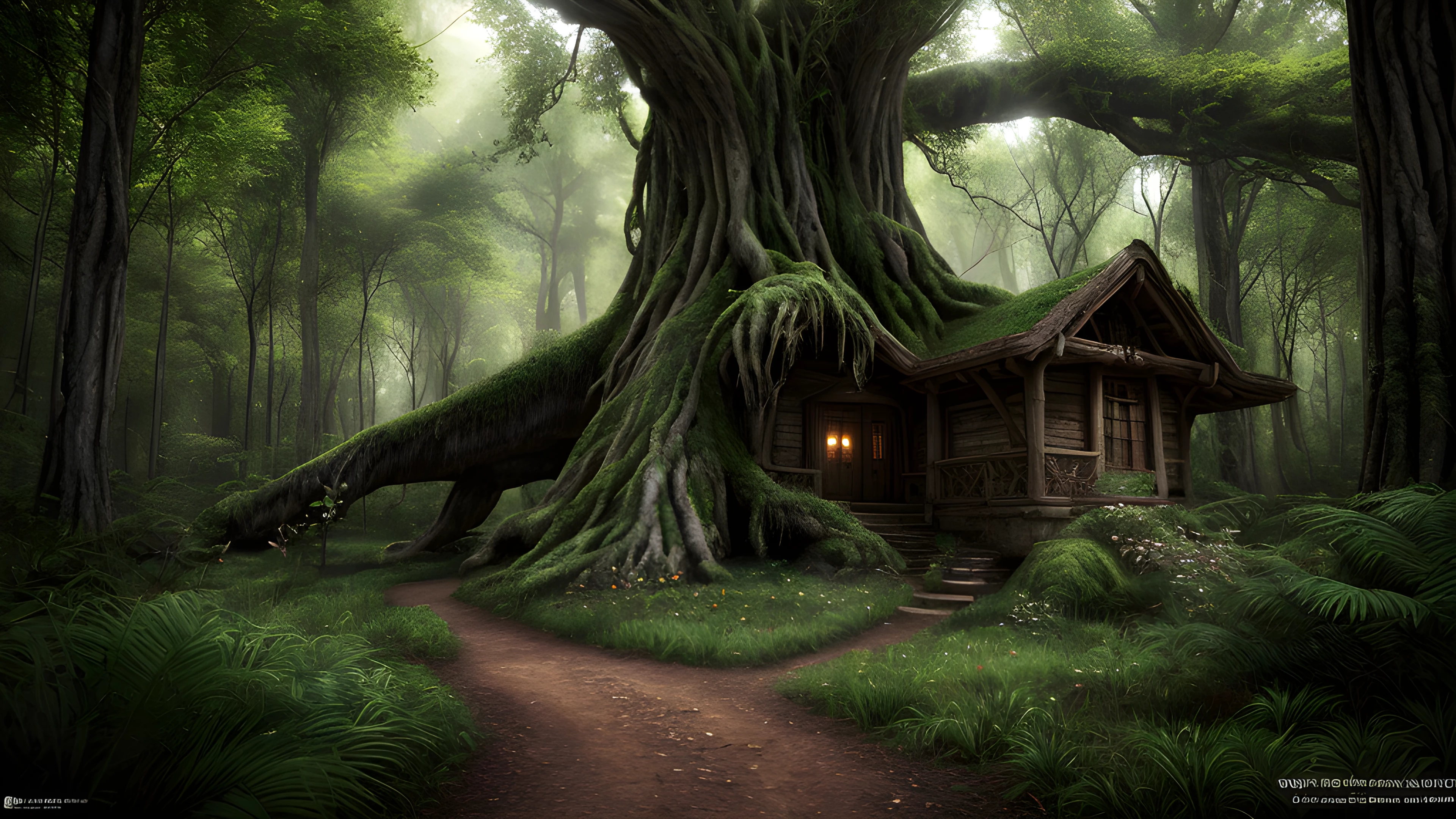 Fantasy Image of Enchanted Refuge Among Ancient Trees, Explore a mysterious forests where trees have enchanted illusions and enchantresses live among its untamed magic Beware, for the tomes hidden throughout hold secrets that only the wise can unlock, magical, forest, enchantment, illusions, ancient, creatures, enchantresses, magic, tomes, secrets, sci-fi photo, hyperdetailed, high quality, 8k, HDR, UHD, realistic photo, perfect anatomy, ultra realistic, photography hyper realistic and hyper detailed, hyper emotional,