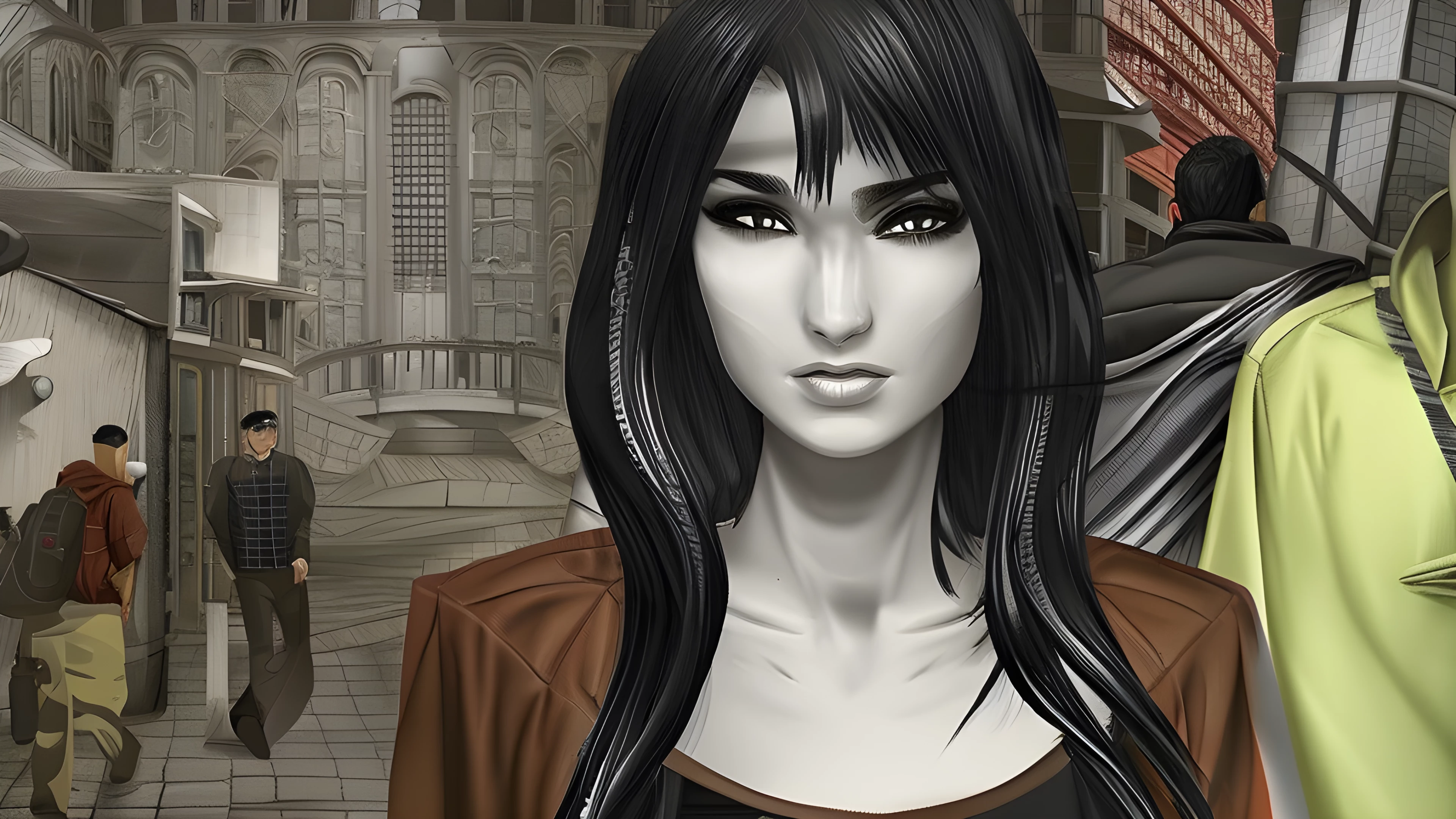 A 2d digital portrait design of Lost in the City's Depths, Underneath the bustling city lies a hidden tunnel where two individuals come together in love and hear each other's hearts through their facial expressions A gripping and emotive digital portrait inspired by artist Audra Auclair, Digital portrait, Urban tunnel, Facial expressions, Togetherness, Lost, Love, Artist, Audra Auclair, (render 2d:1.5), digital art, digital render, digital rendering, (detailed face:1.5), (detailed clothes:1.4), (extremely detailed eyes and face), foreground, detailed face, perfect mouth, highly detailed, sharp focus, stunningly beautiful, high quality, high detailed skin, (full body:1.5), (only one person:1.1), (close up camera:1.5), fantasy character, hd, 4k, concept art, full body shot, (character centered in the image:1.4)