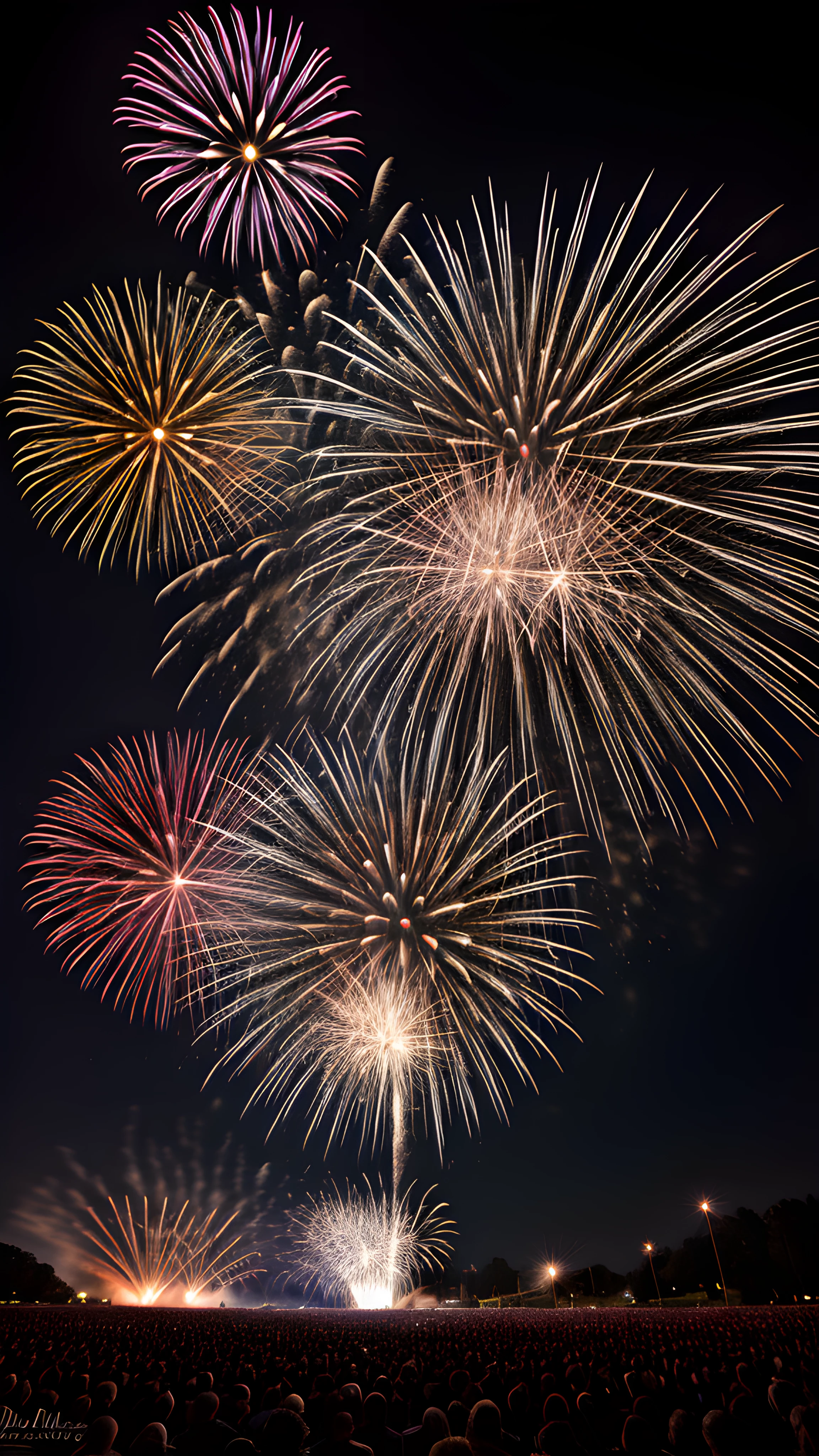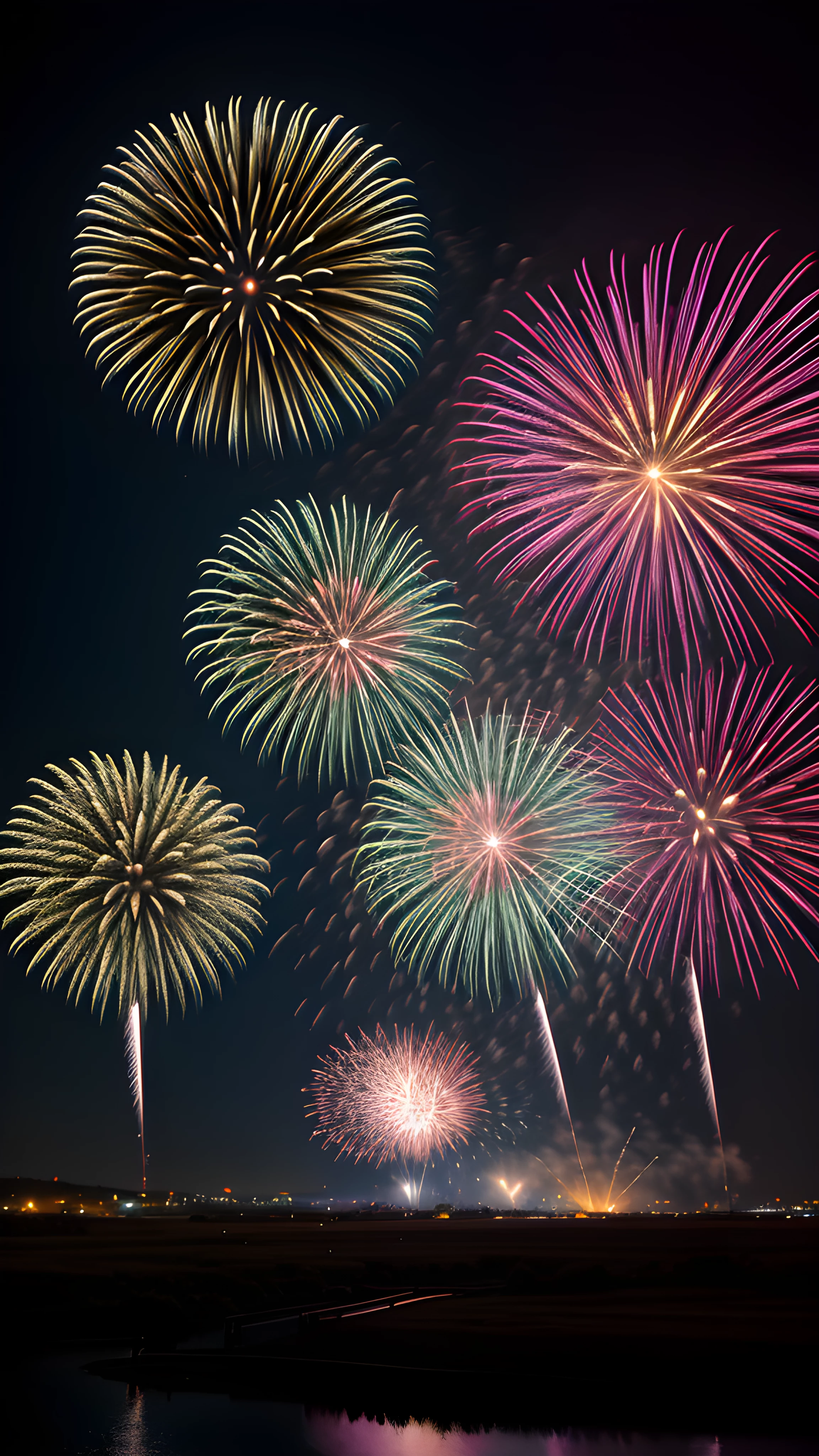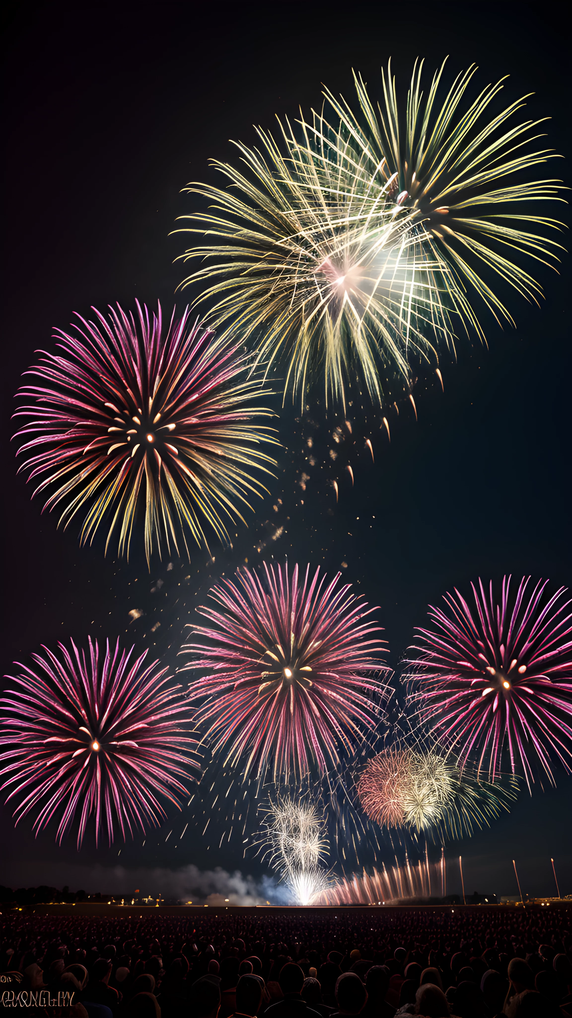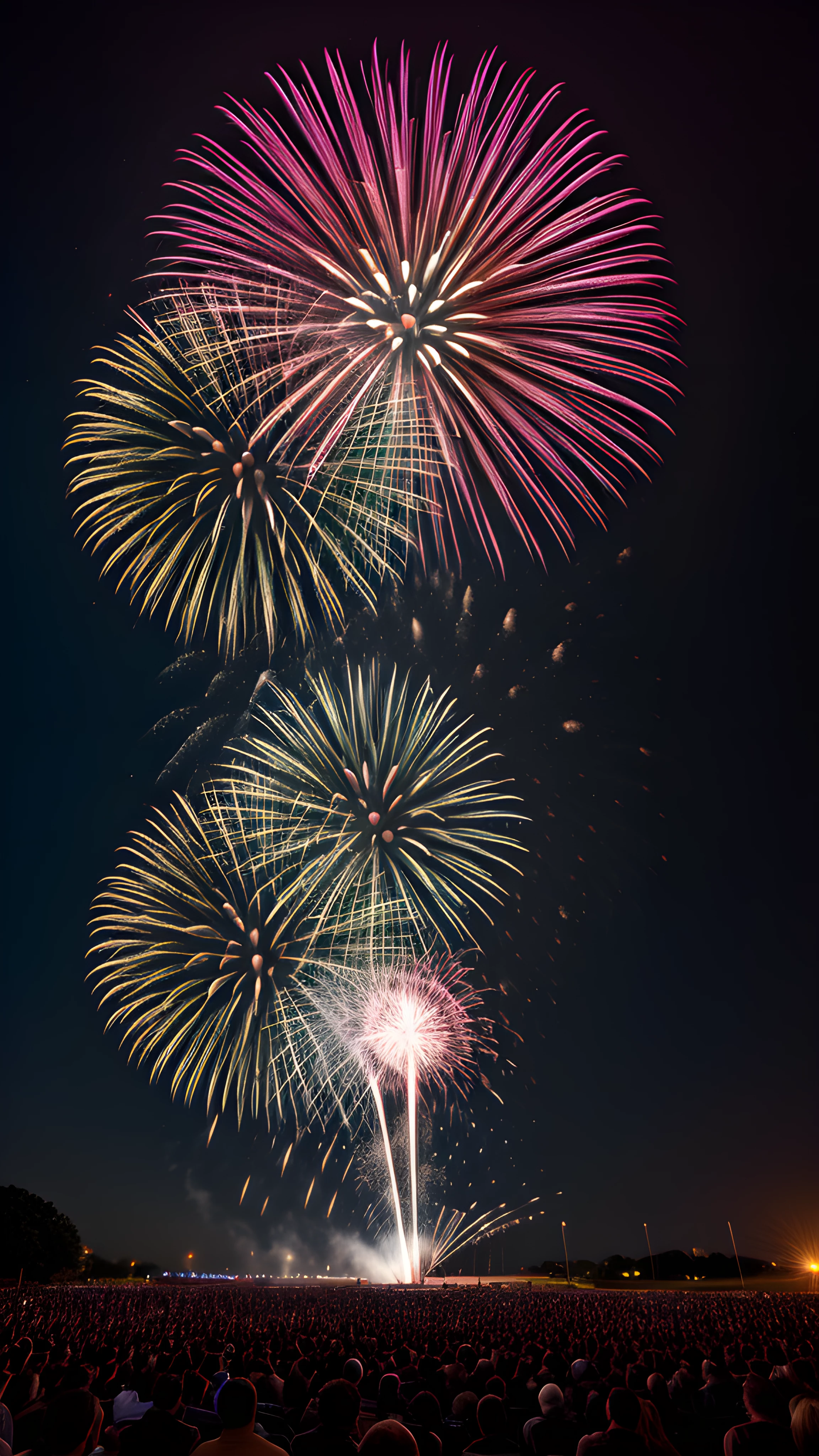A DSLR real photography Explosive Fireworks Display Capturing the Perfect Shot with the Rule of Thirds, As a professional photographer, I drew inspiration from Linda McCartney's approach to capture the essence of fireworks Using the technique of the rule of thirds, I carefully composed the stunning explosion of color against the night sky, with the model beautifully centralized The result a surreal shot that brings the energy of the fireworks to life, professional, photographer, Linda McCartney, fireworks, rule of thirds, colorful, night sky, modeled, stunning, energy, highly detailed, 8k, hdr