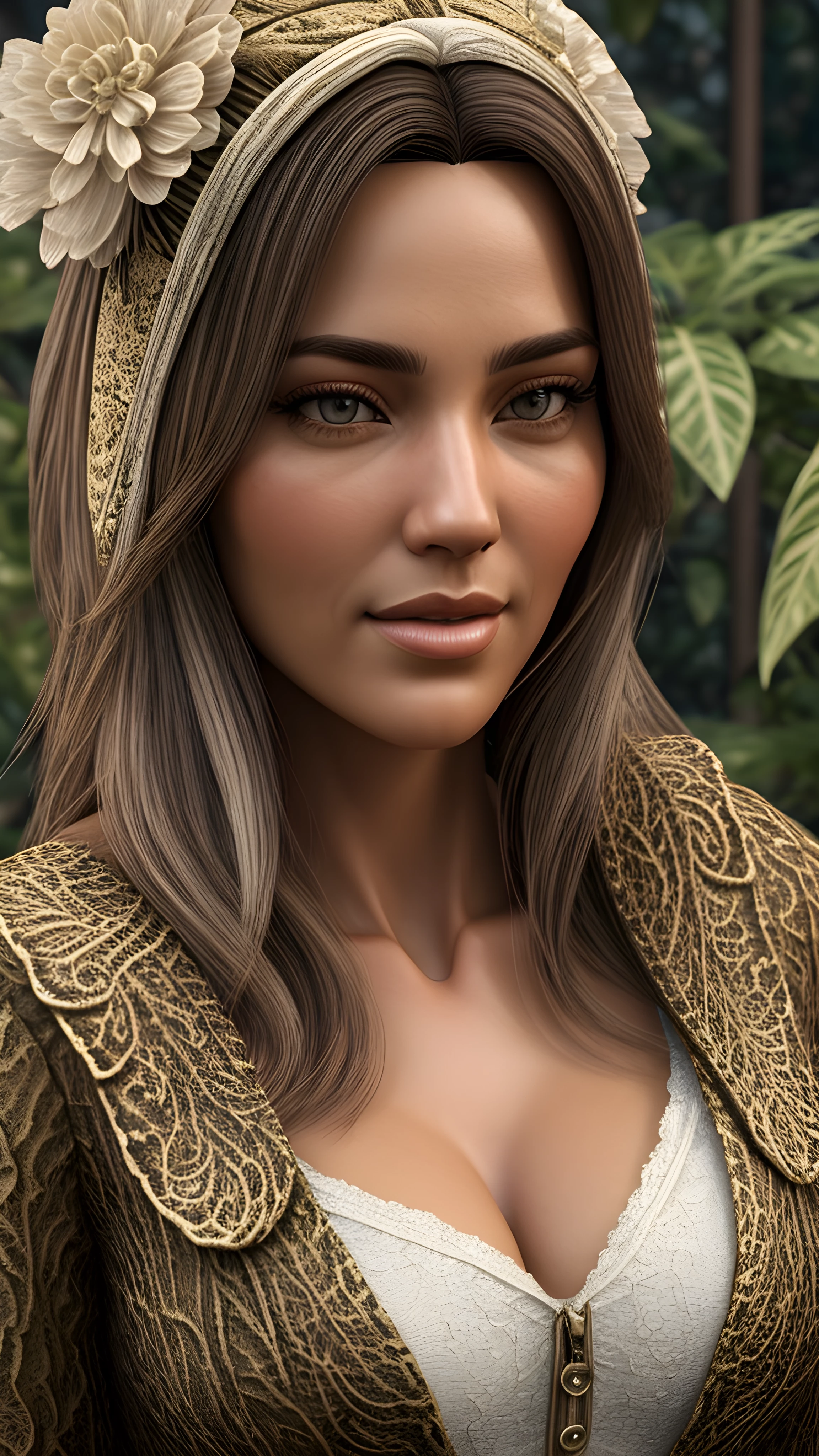 A 3d digital portrait render of Echoes of the Past Glauco Longhi Inspired Intimacy Portraits, Take a journey through time at the history-laden botanical greenhouse speckled with intricate plants Captivate the Culture and Society caught in a moment in these lovingly created 3D models by designer Glauco Longhi, botanical, greenhouse, journey, time, Glauco Longhi, 3D modeling, culture, society, love, (render 3d:1.5), digital art, digital render, digital rendering, (detailed face:1.5), (detailed clothes:1.4), (extremely detailed eyes and face), foreground, detailed face, perfect mouth, 3d photography, highly detailed, sharp focus, stunningly beautiful, high quality photography, high detailed skin, (full body:1.5), (only one person:1.1), (close up camera:1.5), fantasy character, detailed 3d render, uhd, 8k, overdetailed art, concept art, full body shot, photorealistic, (character centered in the image:1.4), ultra high detail, ultra realistic