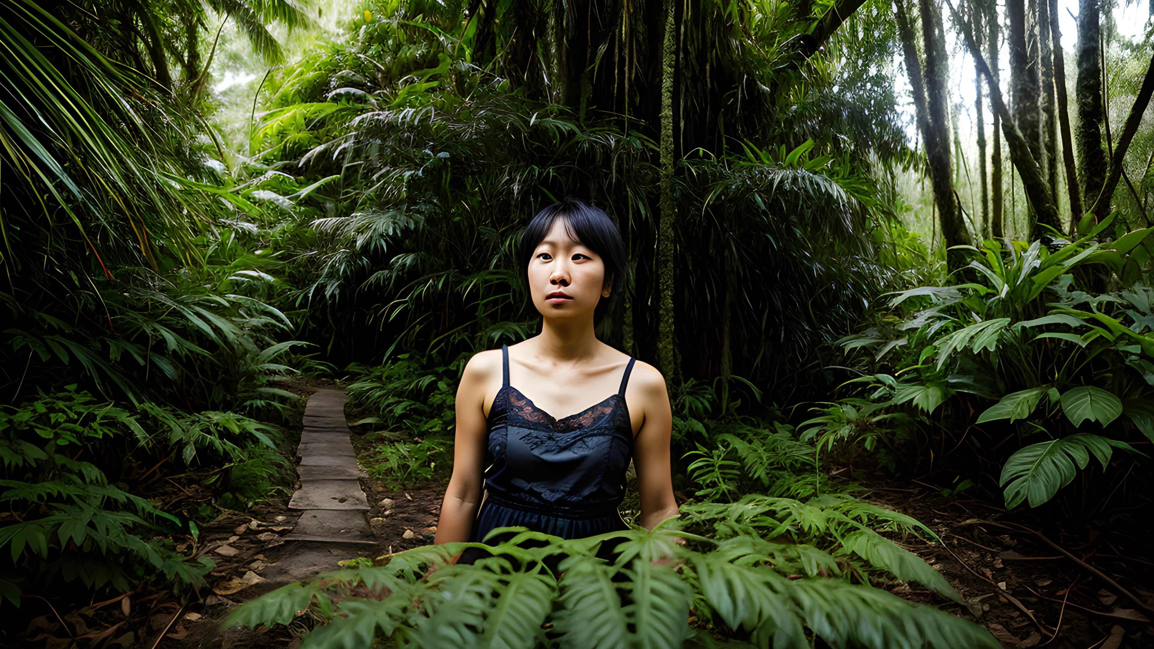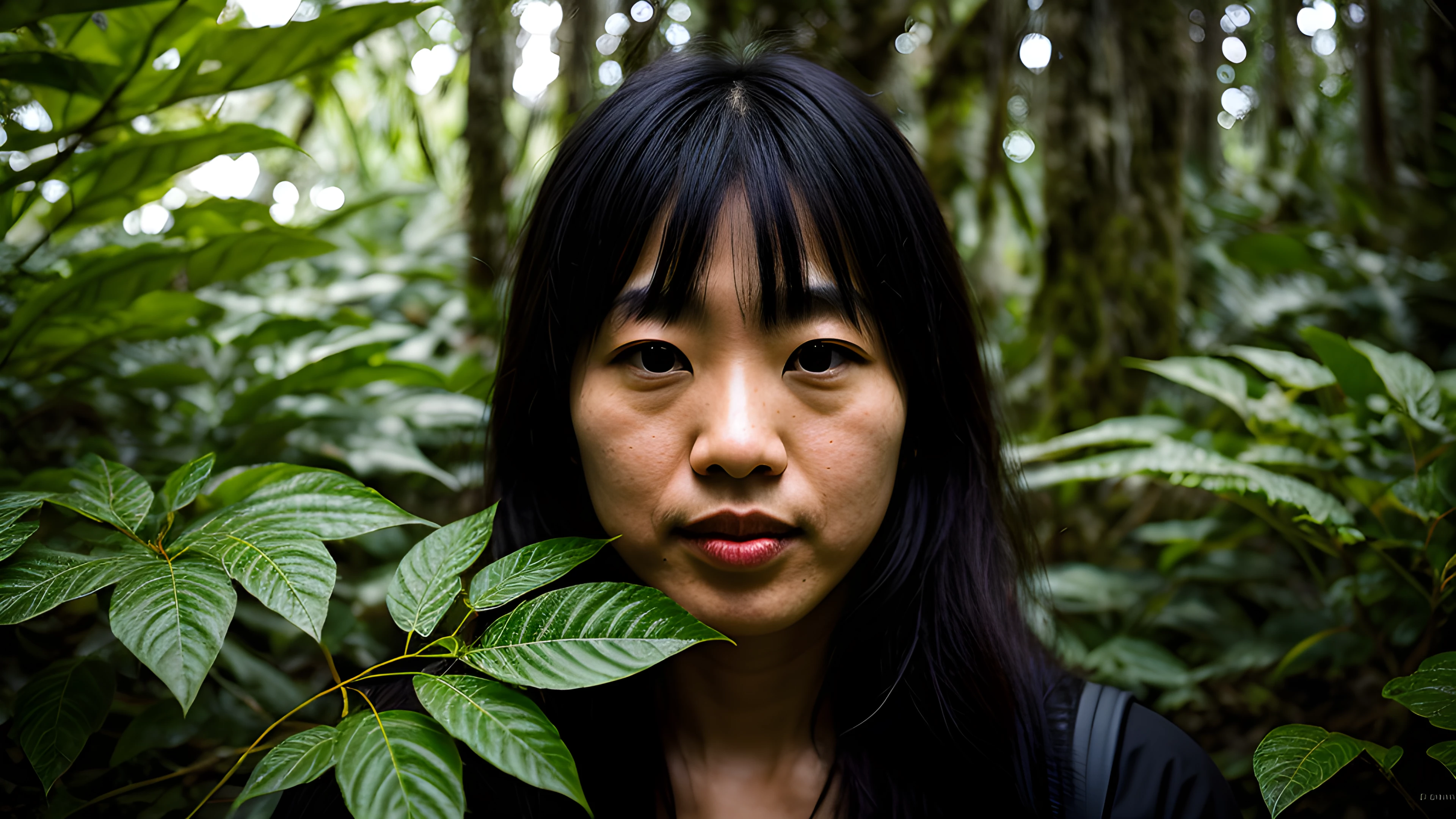 A DSLR real photography Exploring the Varied Textures of the Rainforest through Portraiture, Through the capture of delicate botanical textures against the human form, this series truly encapsulates the lush essence of the rainforest Follow along as we delve into a world of diverse landscapes, each portrait unveiling a unique aspect of this verdant environment, professional, photographer, Nobuyoshi Araki, rainforest, portrait, texture, lush, varied, botanical, human form, highly detailed, 8k, hdr